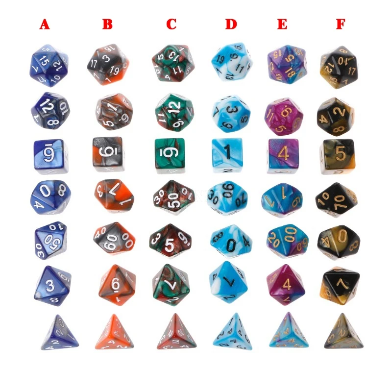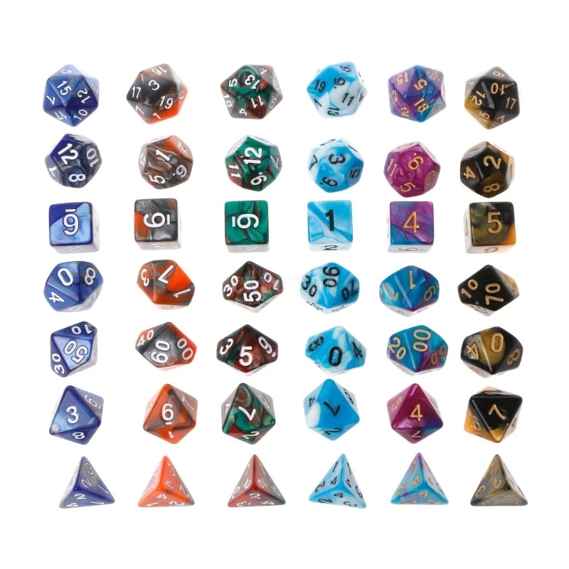 Игральные кости D4, D6, D8, D10, D10 %, D12, D20, 7 шт.компл., 200 набор