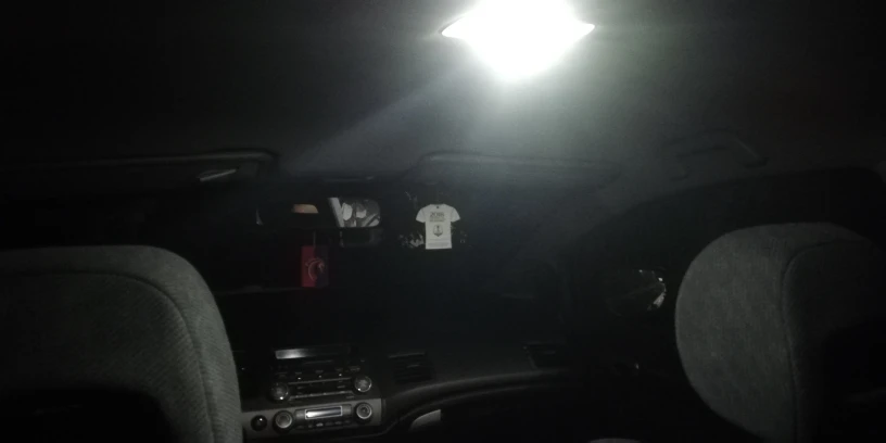 Доставка ровно месяц. Заказывал три лампы для подсветки салона. На фото видно разницу обычной лампы и светодиодной. В салоне реально стало светло как днём и радует белый свет, а не этот тускло жёлтый штатный. Затухание лампы плавное, как и у штатных. Не знаю на сколько их хватит, но пока доволен как слон. Продавана рекомендую.