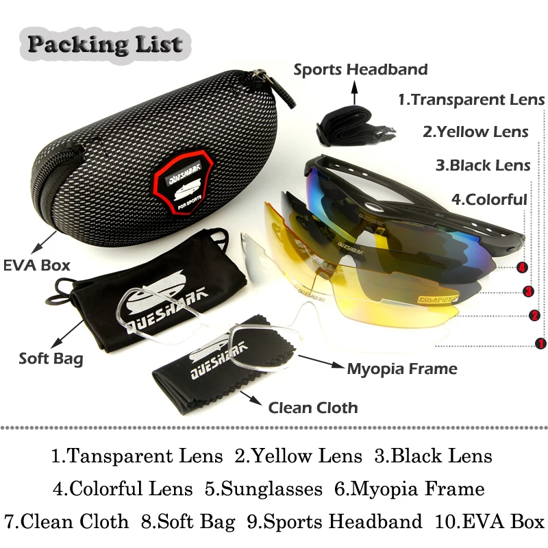 Очки солнцезащитные Queshark, для мужчин и женщин, Поляризованные, 5 линз