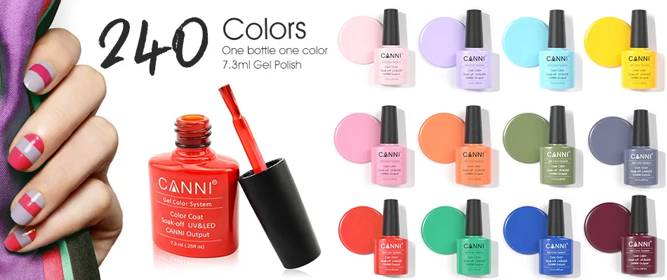 240 цветов s/lot CANNI отмачиваемый Гель-лак для ногтей 7,3 мл Светодиодный УФ-цветной гель лак для нейл-арта для салона светодиодный ная лампа отверждения УФ-гель для ногтей