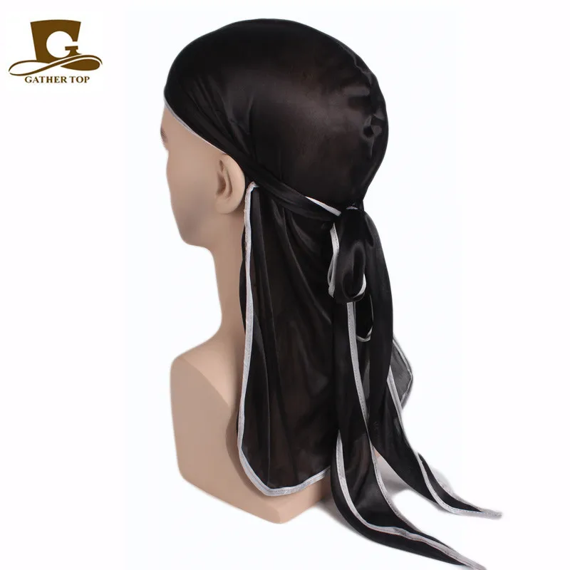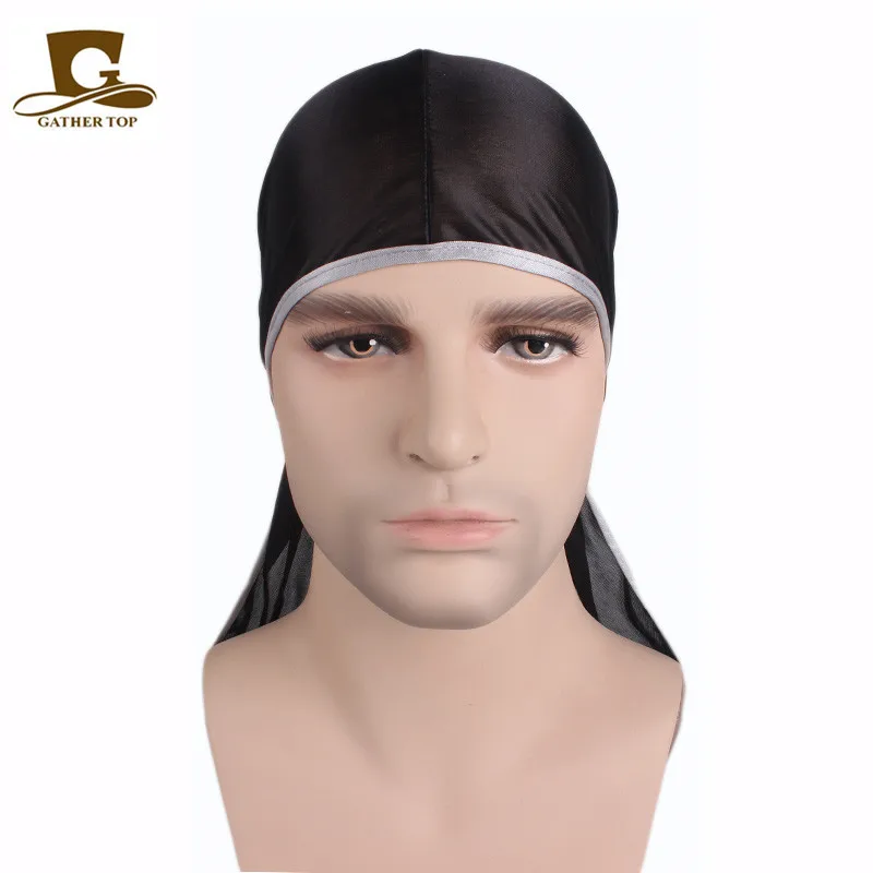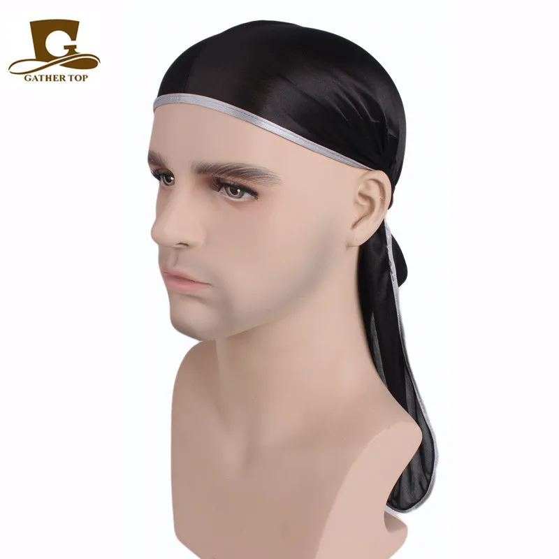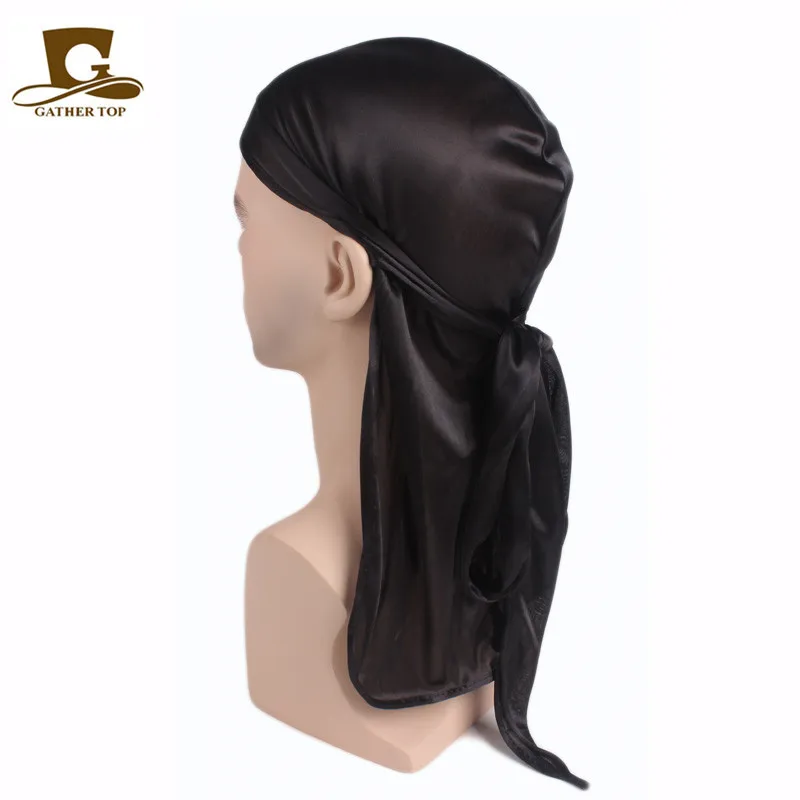 Мужские шелковистые банданы, тюрбан, шляпы парики Doo, мужские атласные аксессуары для волос, очень длинный хвост Du-Rag