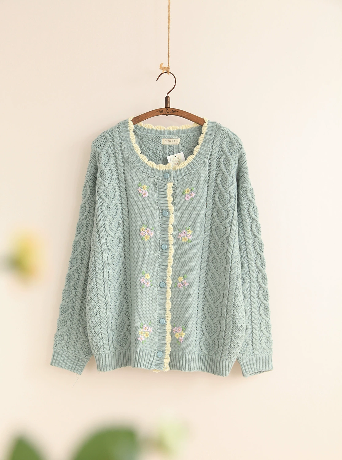 Женский вязаный свитер Mori Girl, плотный теплый кардиган с цветочным принтом, вязаный кардиган для девушек, свитер, вязаный крючком пальто, весна-осень 2021