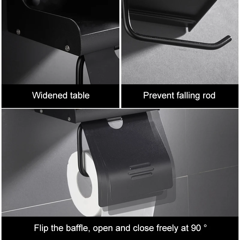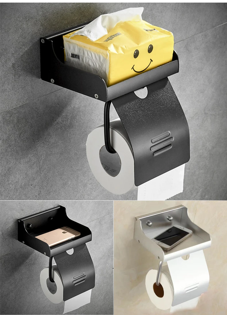 Держатель для туалетной бумаги EL7566 для ванной комнаты, стойка для туалетной бумаги с полкой для телефона, Настенный алюминиевый черныйсеребристый