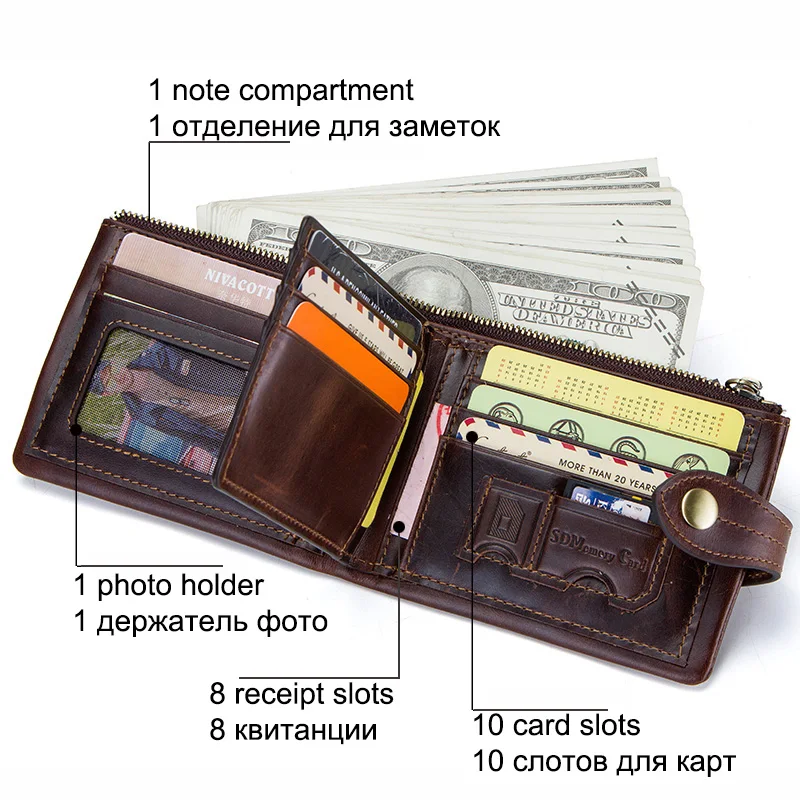 CONTACT'S Мужской кашелек из натуральной кожи с застежкой молния имеются отделения для хранения денег телефона карточек 2019