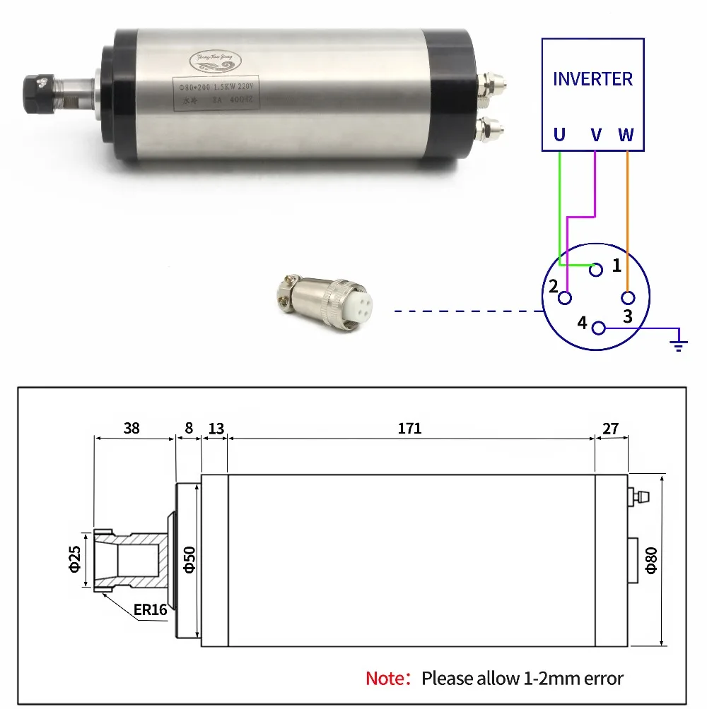 1,5 кВт с водяным охлаждением Шпиндельный двигатель Гравировальный фрезерный шлифовальный станокСпецификация: