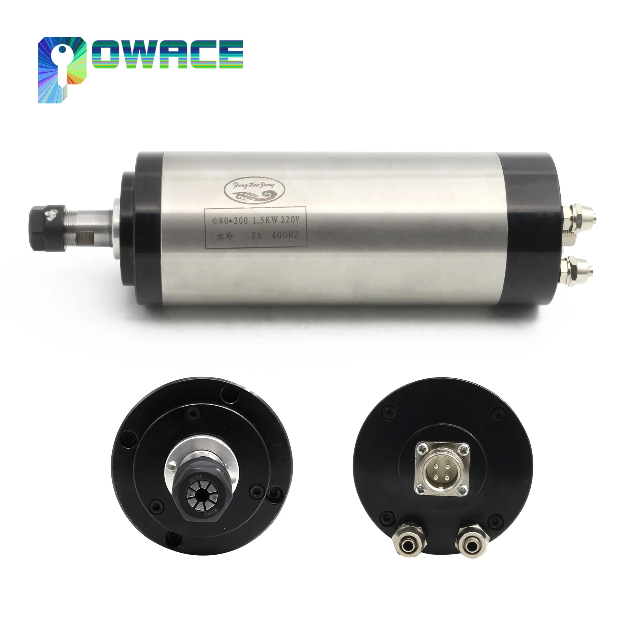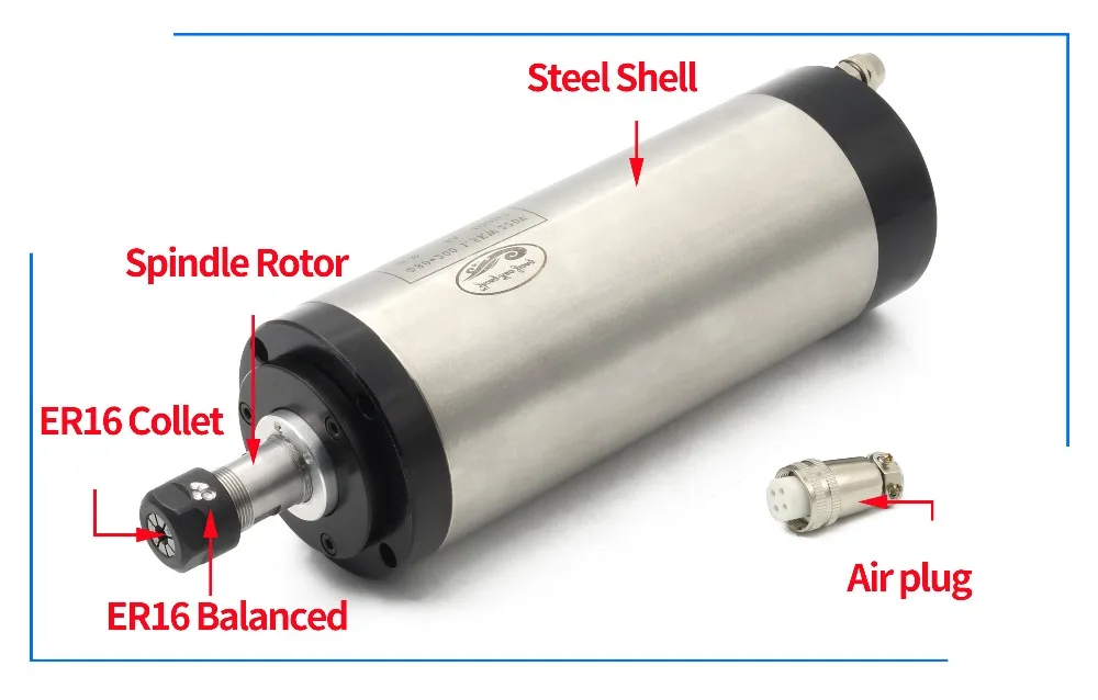 1x1,5 кВт ER16 шпиндель с водяным охлаждением(4 подшипника, 220 В, 400 Гц, 24000 об/мин)