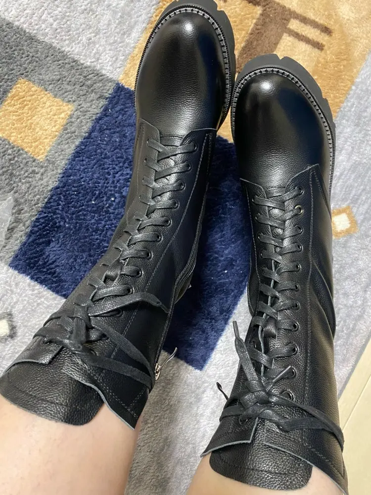 Сапоги женские осенне-зимние из натуральной кожи, на платформе и квадратном каблуке
