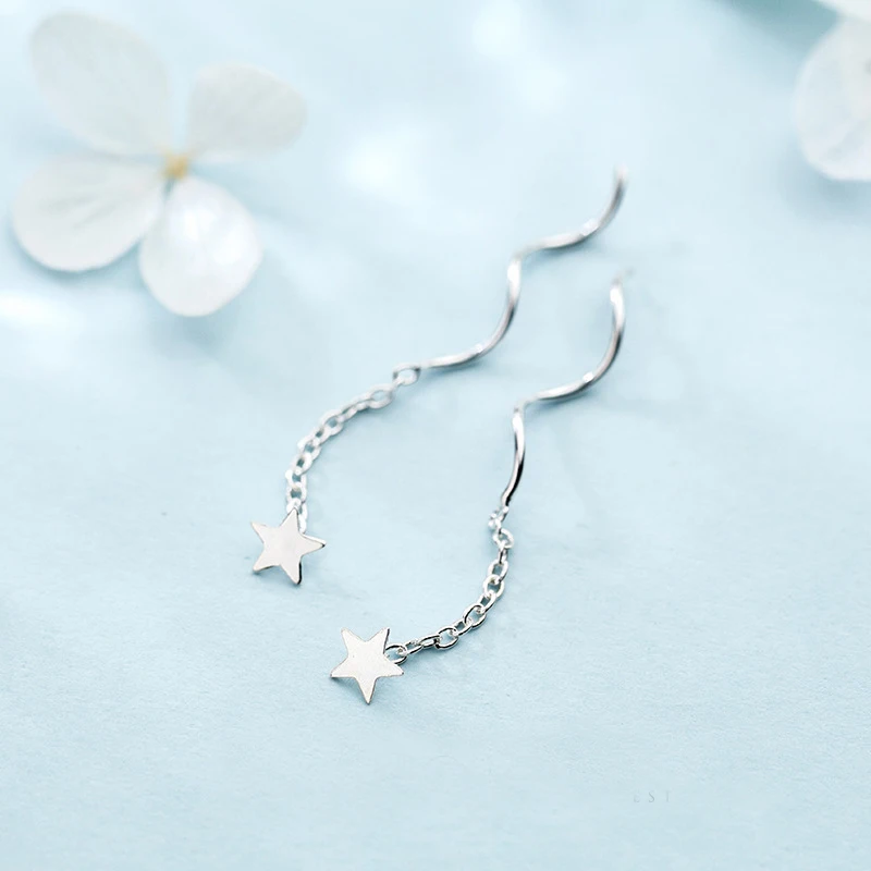 Женские серьги с подвесками в виде звезд и волн