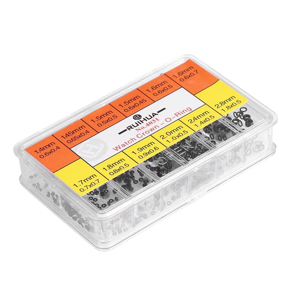 Резиновое уплотнительное кольцо, 1 коробка, 12 размеров, Корона часов, водонепроницаемые кольца, прокладка для часов, Черное круглое кольцо, инструменты для ремонта часов