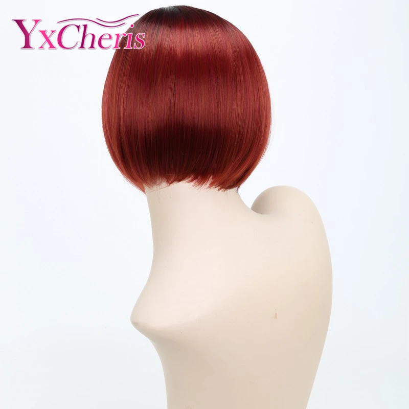Искусственные волосы для женщин, красные синтетические короткие волосы из термостойкого волокна с эффектом омбре, короткие волосы Пикси, для косплея