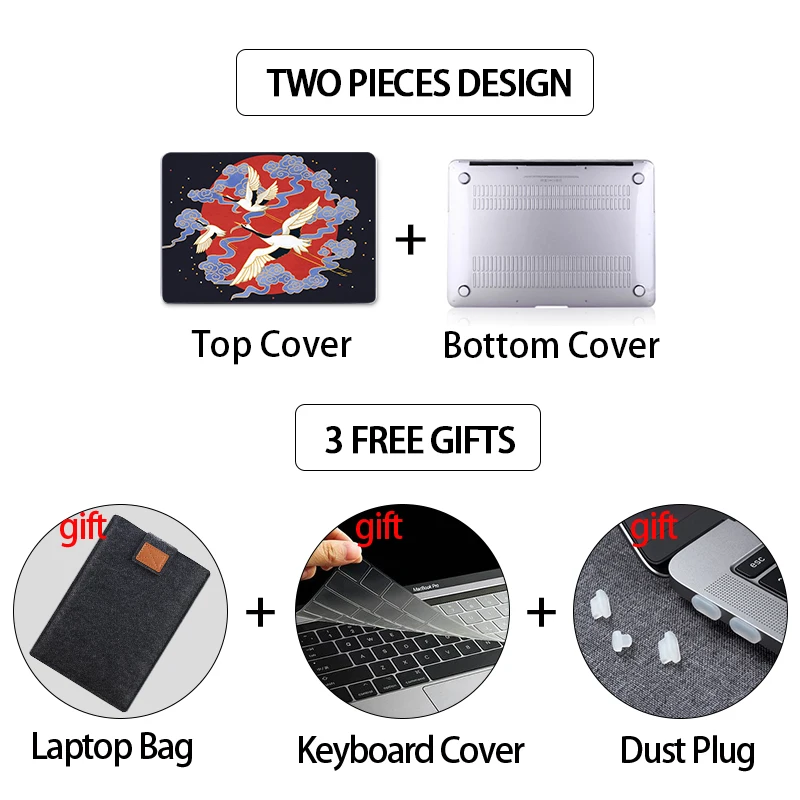 Очень красивый и качественный чехол+набором шли клавиатура, заклепки на отверстия и конверт для ноутбука. Запаковали так, чтобы все дошло в целости. Очень рекомендую!