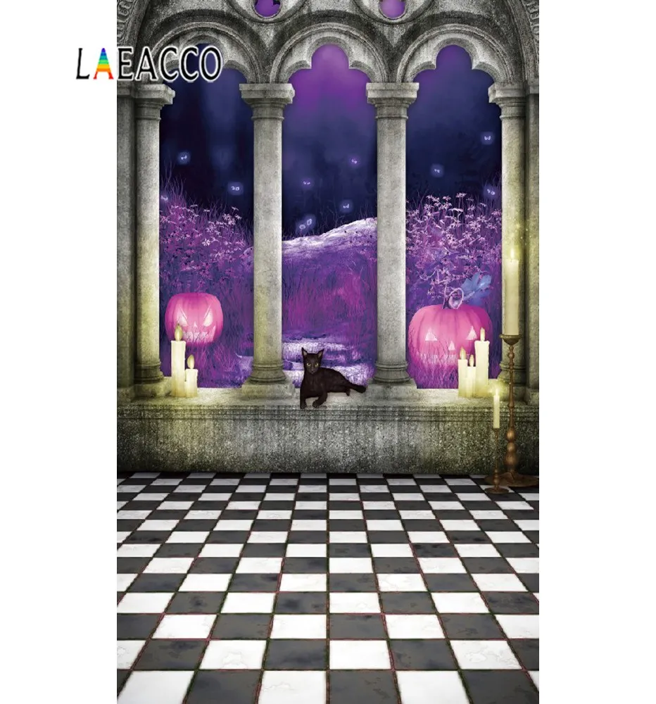 Фон Laeacco с изображением Хэллоуина, свечи, кошки, арки, тыквы, квадратного пола, для детских фотографий, для фотостудии