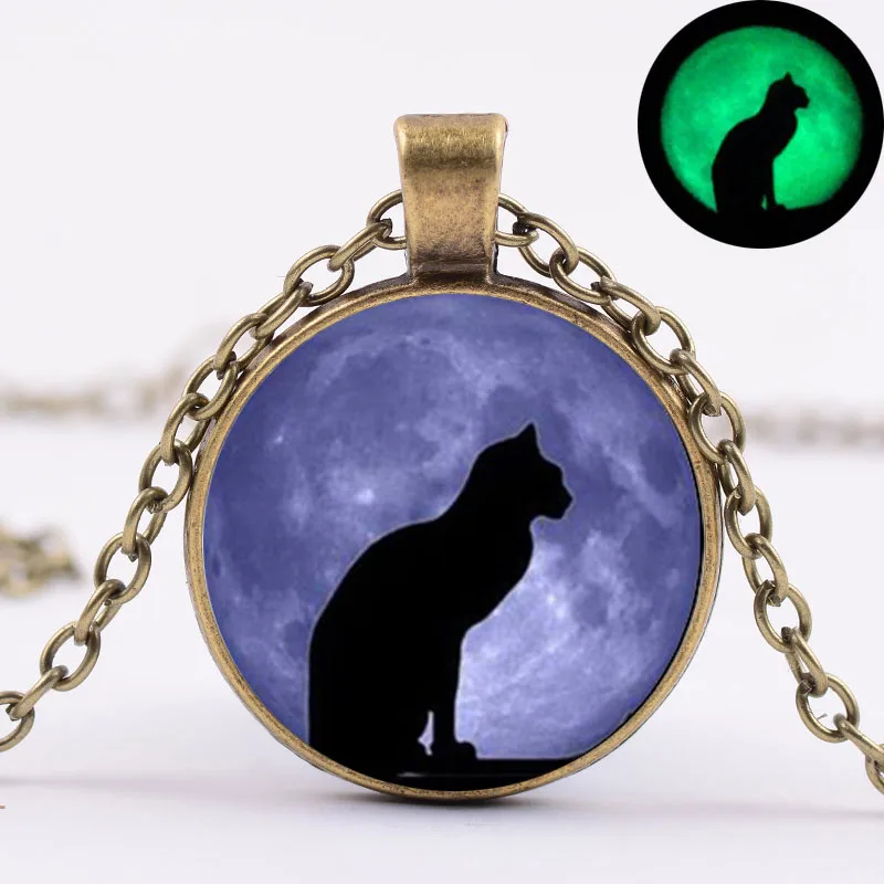 SONGDA светящееся в темноте ожерелье фиолетовая Луна Кот тень светящийся прозрачный стеклянный кулон ожерелье-чокер для женщин Подарки на день рождения