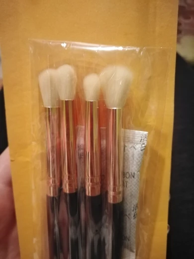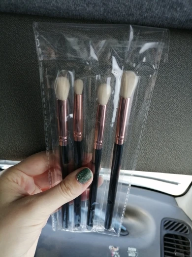 Хорошее качество. Так же, как они выглядят на картинке. Они Довольно плотные и разной толщины, идеально подходят для разных макияжа. Они приходят 4, каждый меньше (или точно), чем предыдущий. Рекомендуется на 100%. Хорошо защищенная доставка, все кисти индивидуально упакованы. Он прибыл быстро в Мадрид, Испания, примерно через 2 недели. Мне не нужно было обращаться к продавцу, все без проблем.