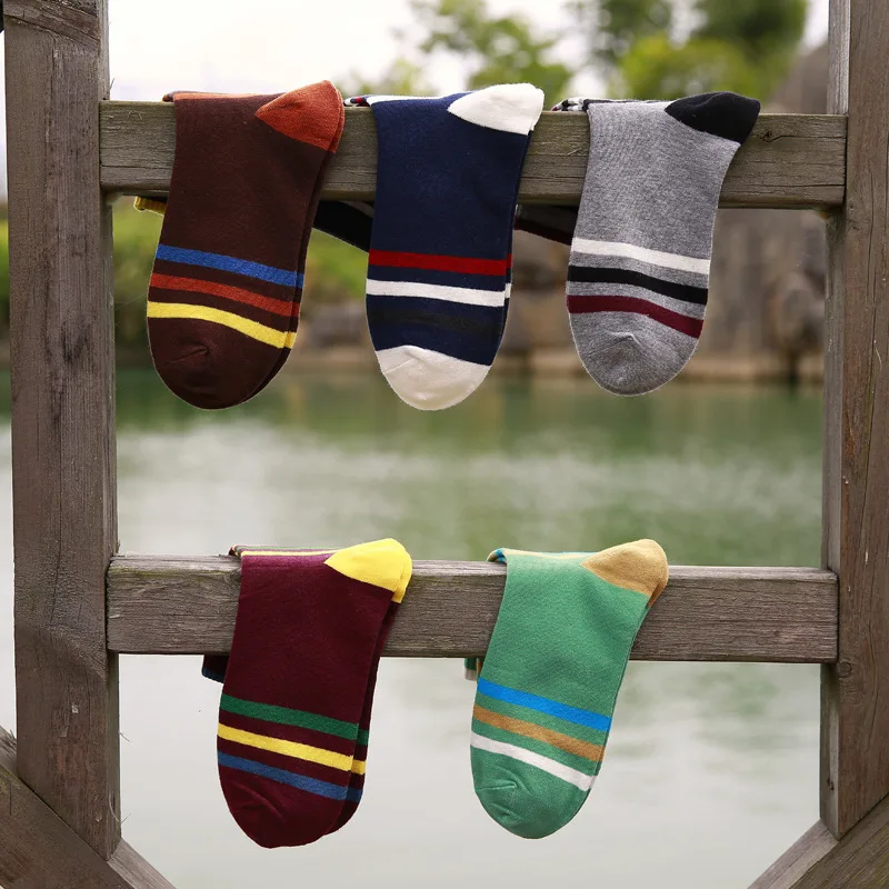 Фирменные качественные мужские носки, веселые полосатые мужские носки из чесаного хлопка, яркие носки Calcetines Largos Hombre, забавные носки в стиле хип-хоп, серые, синие, EUR40-44