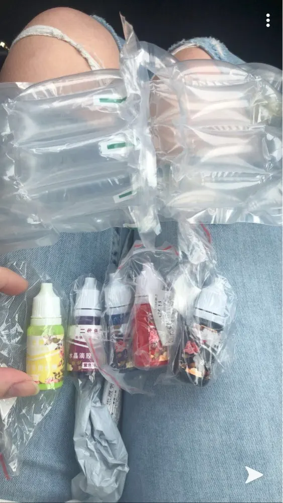 Заказ не отслеживался, я испугалась что уже не придёт, но все хорошо) положили в ящик) На вид цвет больше похож на красный или перенасыщенный розовый, но надеюсь в смоле будет хорошо смотреться!) ничего не пролилось, запакован идеально! Спасибо огромное)