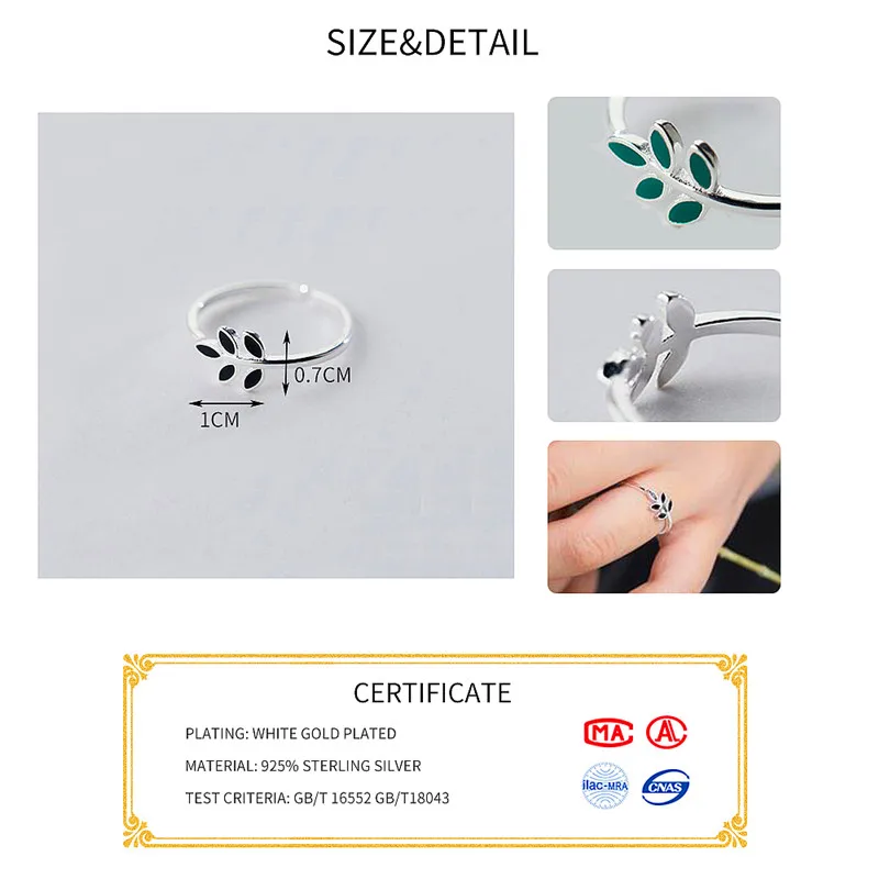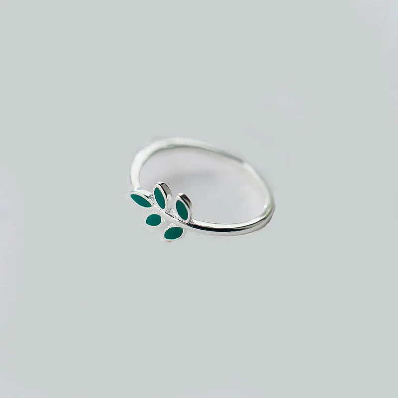 Кольцо женское из серебра, с маленькими зелеными листьями