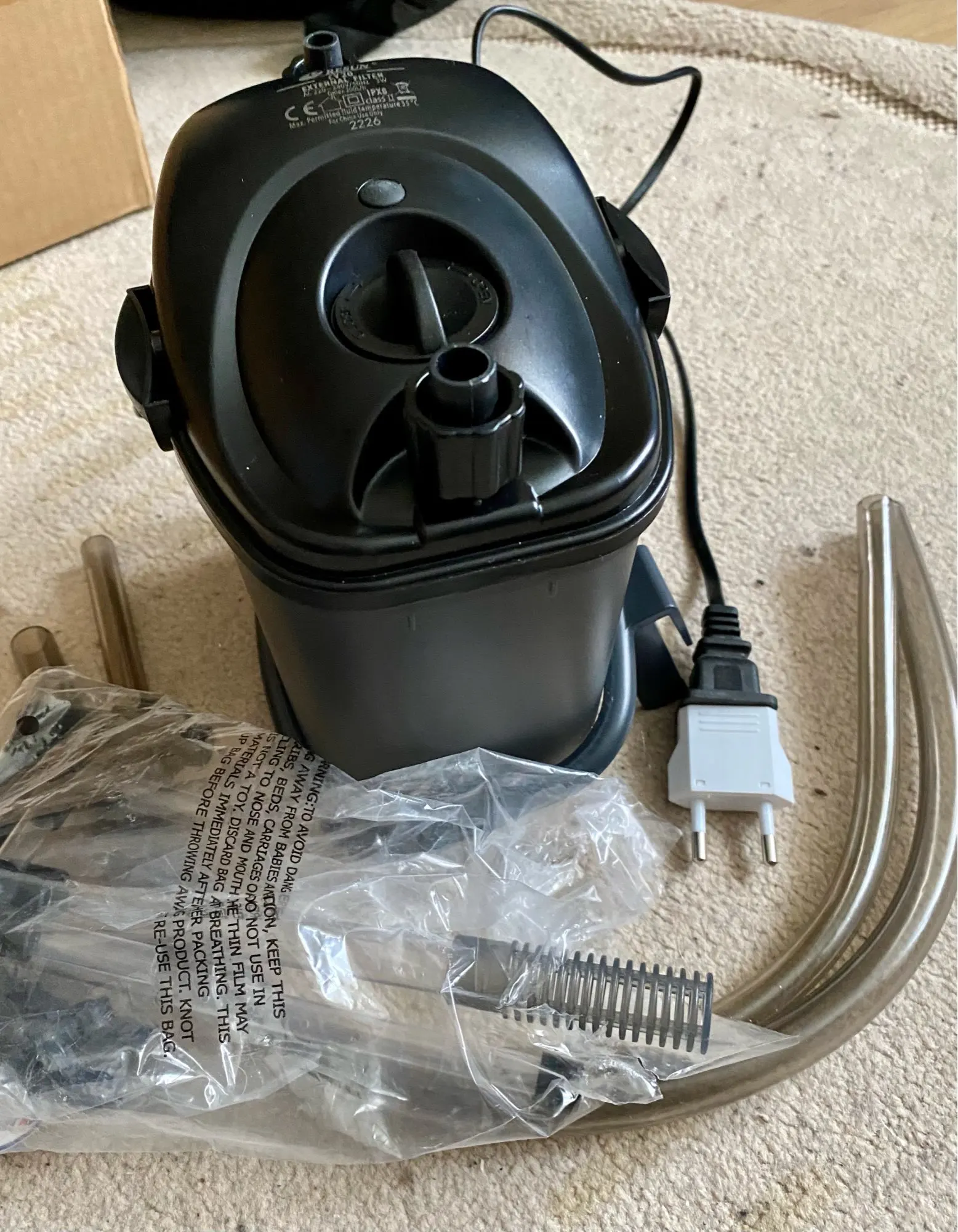 Хороший фильтр, жаль в России его теперь практически невозможно найти в продаже. Для аквариумов небольшого объёма очень подходящий размер и формфактор. Коробка при доставке сильно помялась, но готовя товар к пересылке продавец дополнительно замотал корпус фильтра в «пупырку», так что ничего не лопнуло и не сломалось. Комплект полный. В процессе доставки комплектный уголь сильно напылил и шланги и некоторые трубки стали грязными. Пришлось протереть. Продавец доукомплектовал фильтр переходником на евровилку - молодец, спасибо! Работоспособность и герметичность пока не проверял, после проверки дополню отзыв.