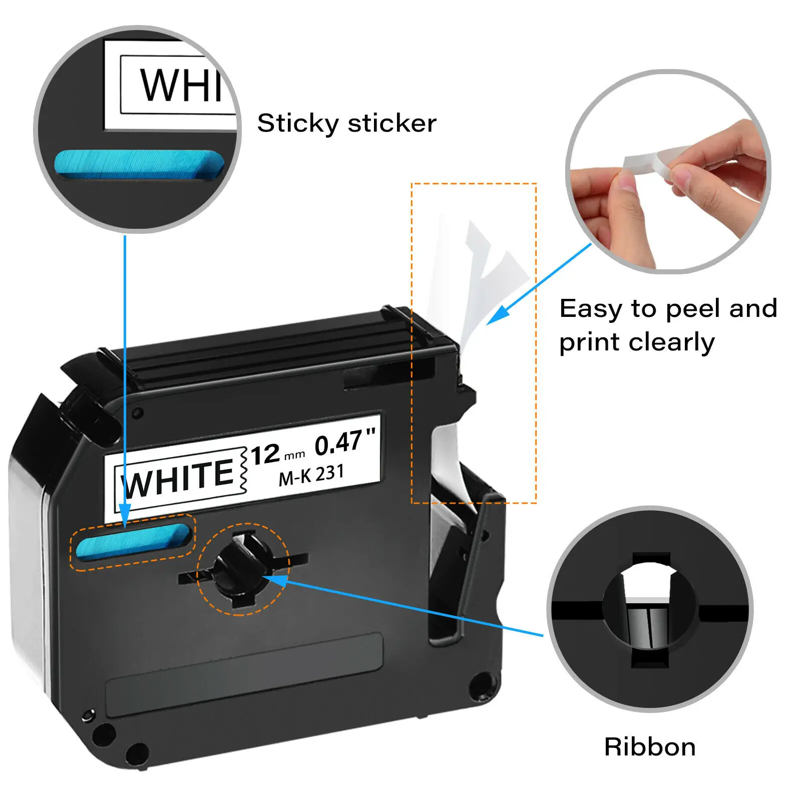 M-K231 MK231 M-K 231 Совместимость для Brother P-touch M Тип запечатанных лент для M-K131 MK-221 принтер этикеток для PT-80 PT-70