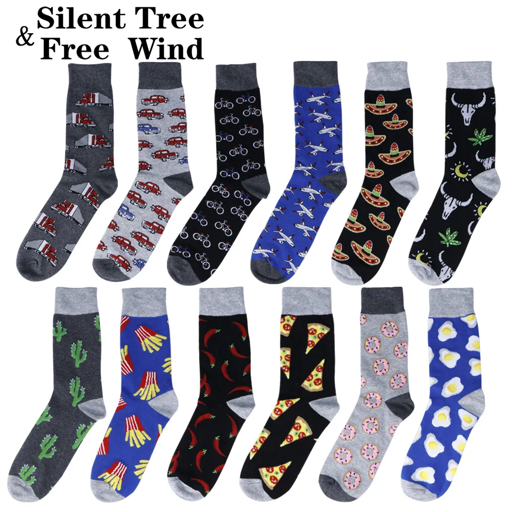 Новинка 2018, зимние мужские носки, забавные носки в стиле хип-хоп, в стиле Харадзюку, забавные носки с пиццей, КАКТУСОМ, перцем, яйцом, самолетом, быком, НЛО, толстые носки