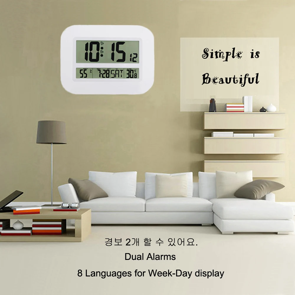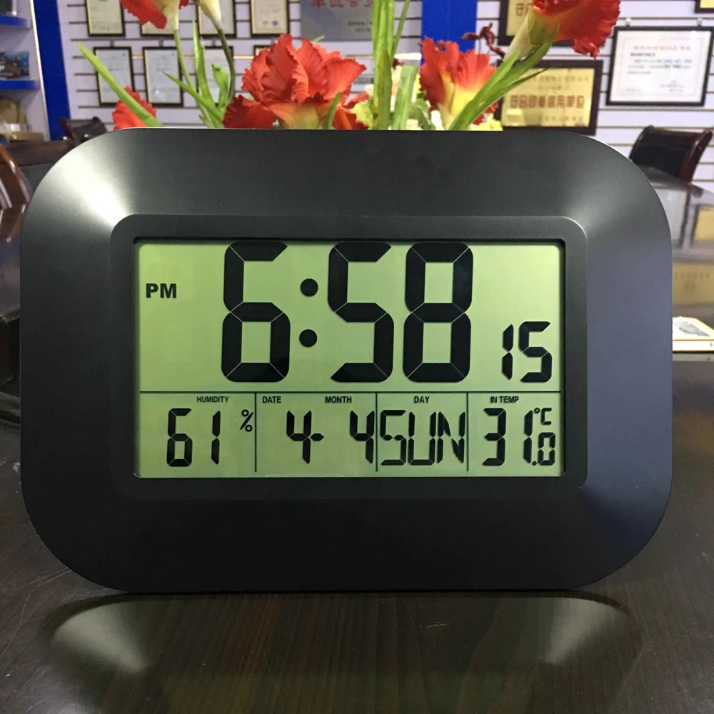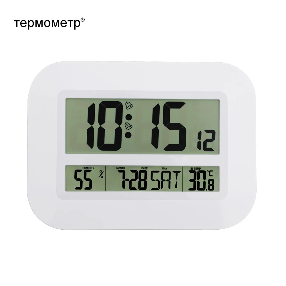 Декоративные цифровые настенные часы с будильником, настольный календарь, термометр, влажности, гигрометр, радиоуправляемые часы