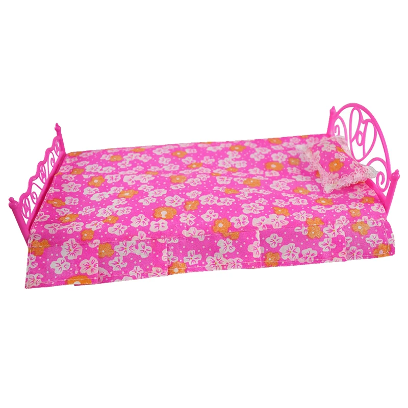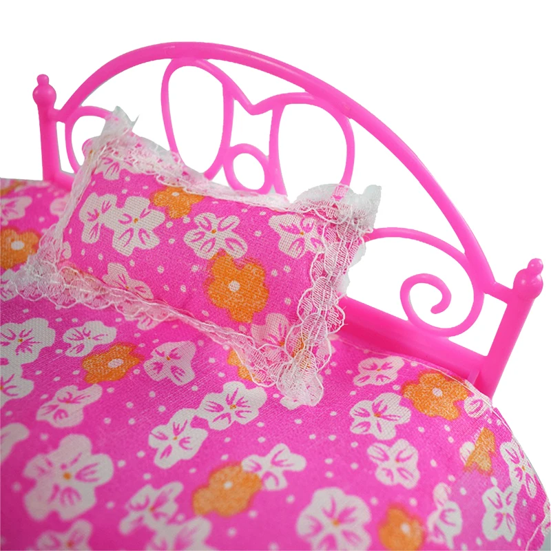 1 упаковка = 3 шт. (розовая кровать + подушка + простыни) Кукольный игровой домик, мебель, кровать, детские подарки, детские игрушки для 12 дюймовых кукольных аксессуаров