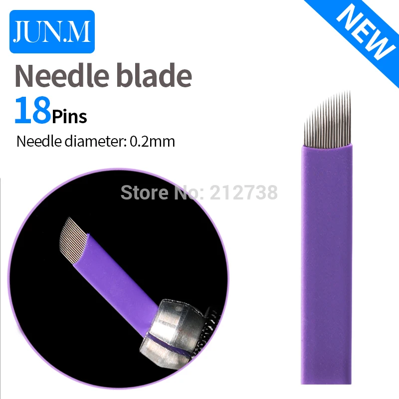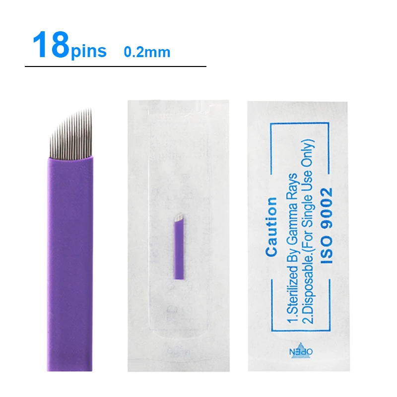 0,2 мм 50 шт татуировки иголки, аксессуары для шитья Перманентный макияж стерилизованные фиолетовый 18 шпильки супер острый мануального татуажа бровей, лезвие для бровей губ