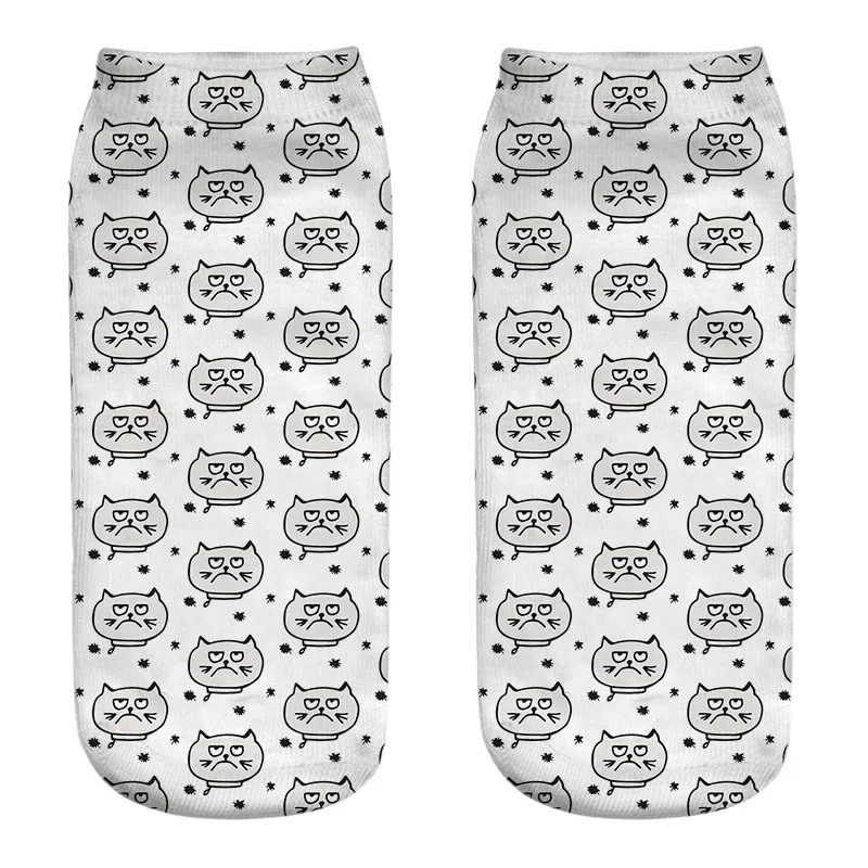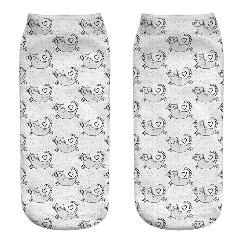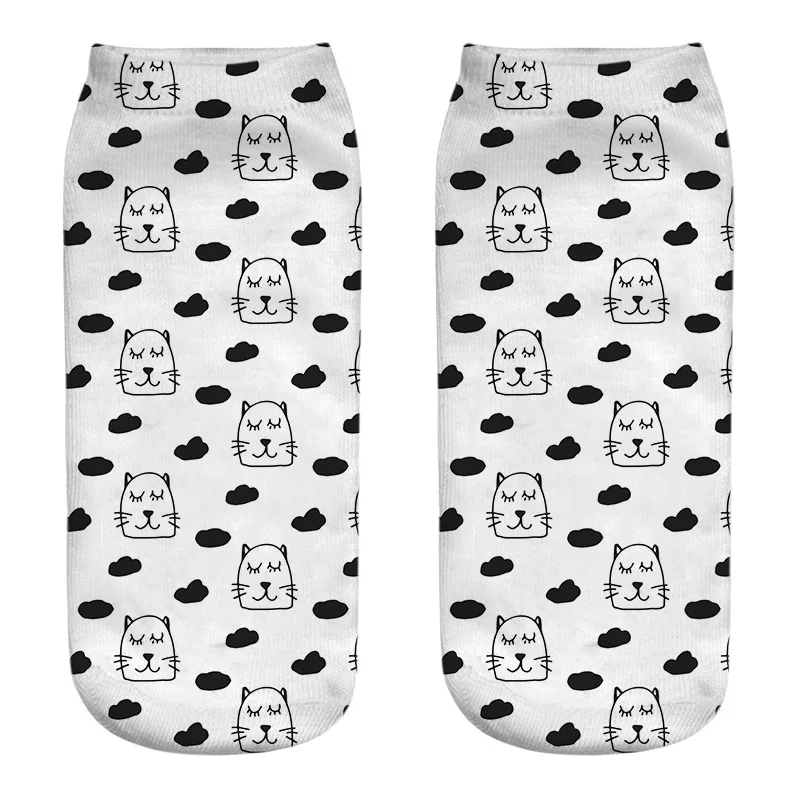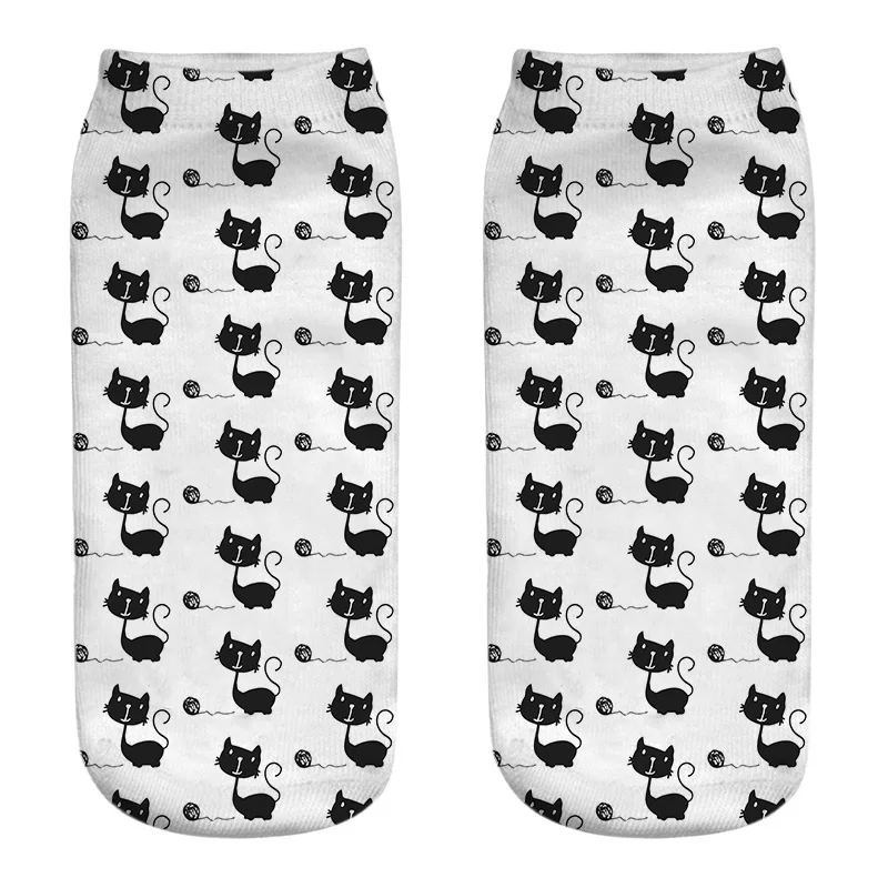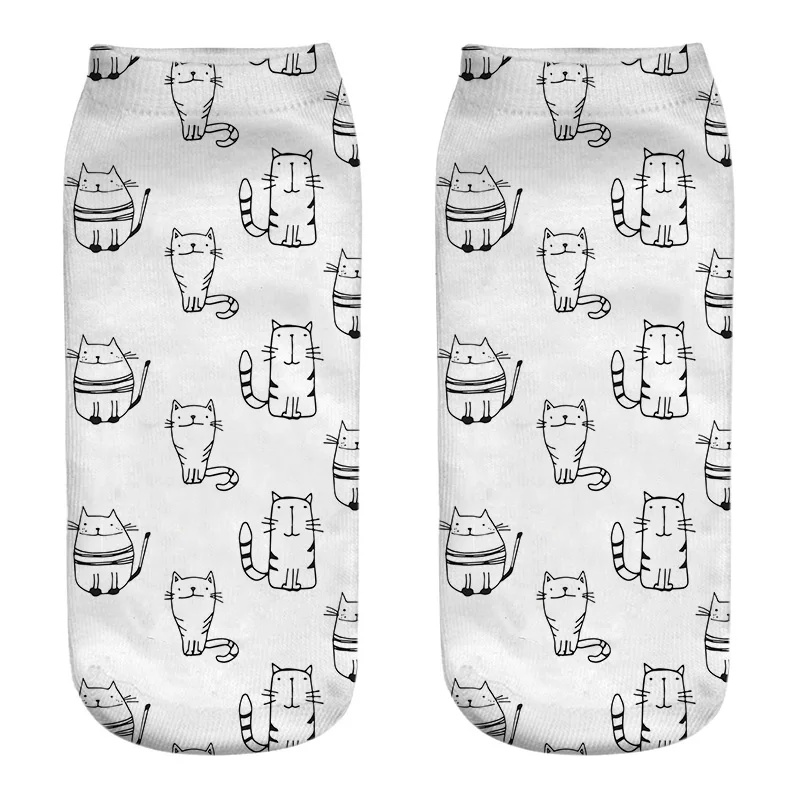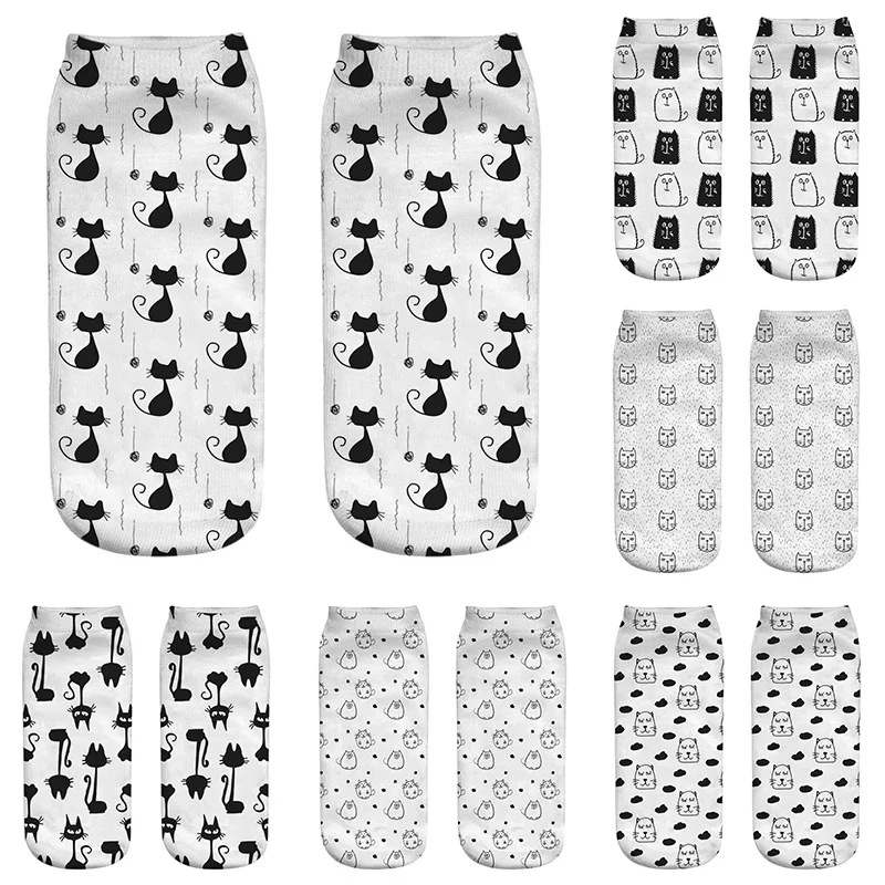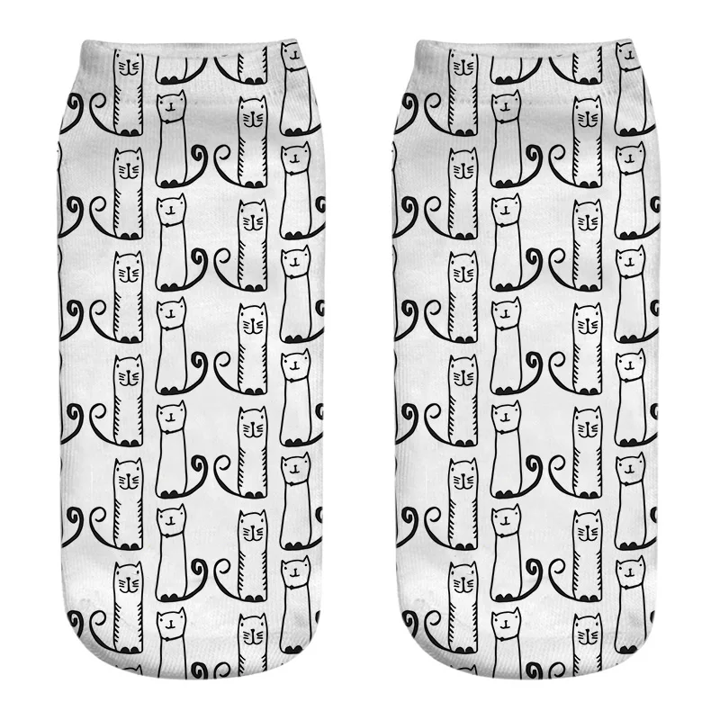 Новинка, женские модные хлопковые короткие носки с 3D принтом, милые мягкие детские летние белые низкие носки в стиле Харадзюку С мультяшным котенком