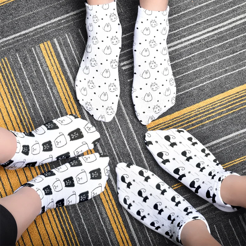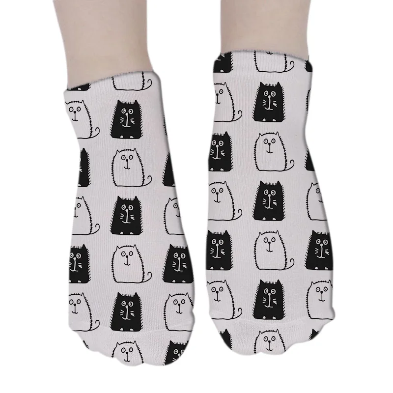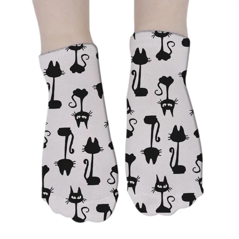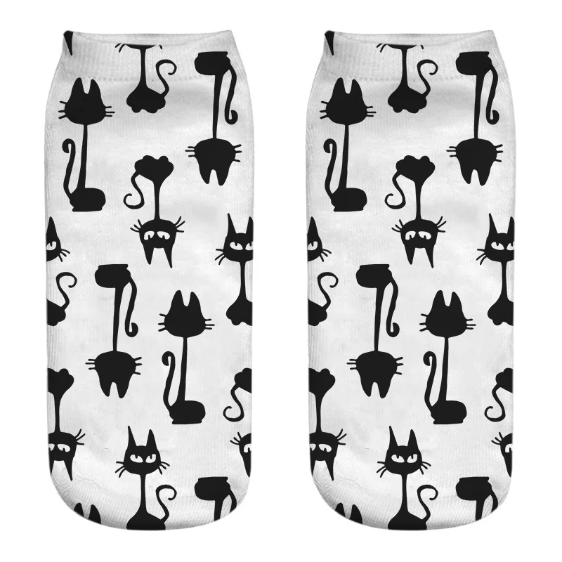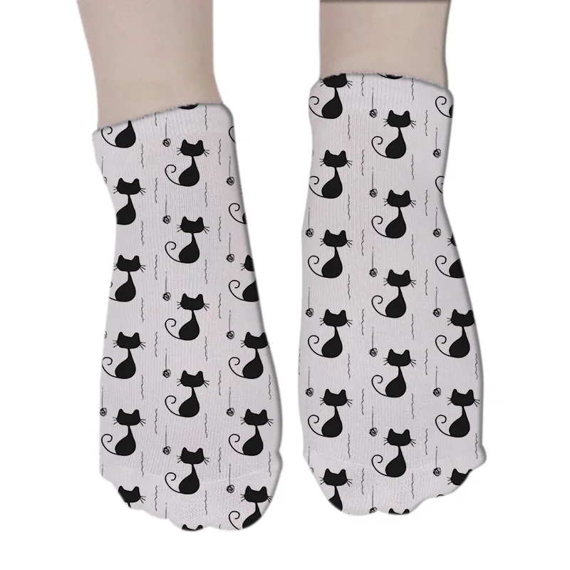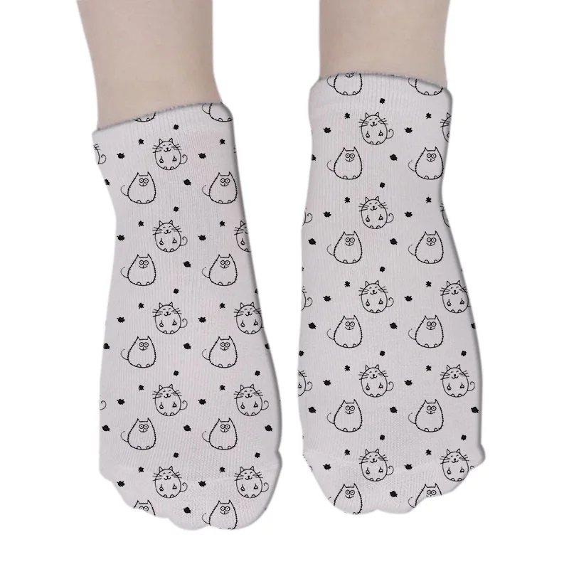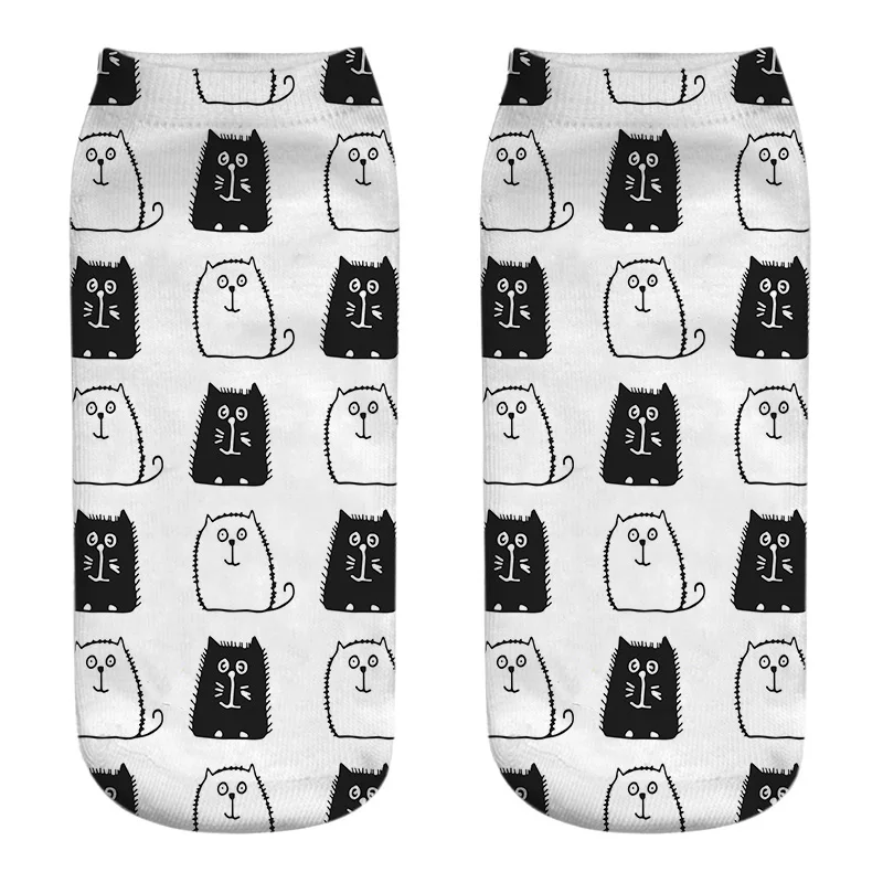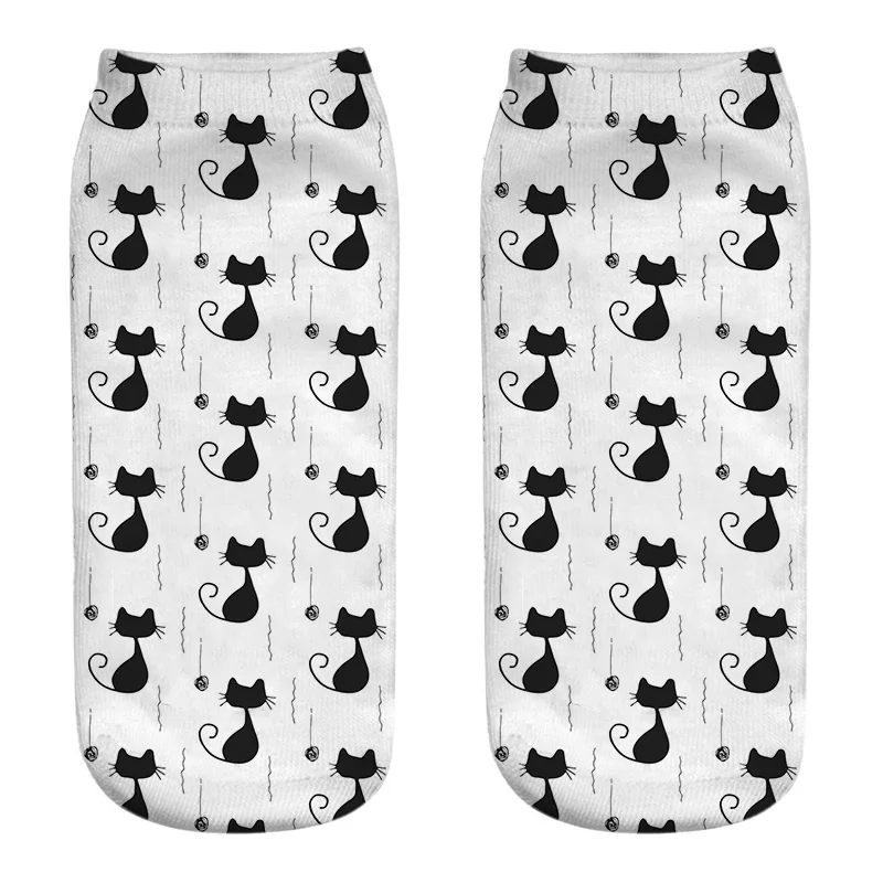 Новинка, женские модные хлопковые короткие носки с 3D принтом, милые мягкие детские летние белые низкие носки в стиле Харадзюку С мультяшным котенком