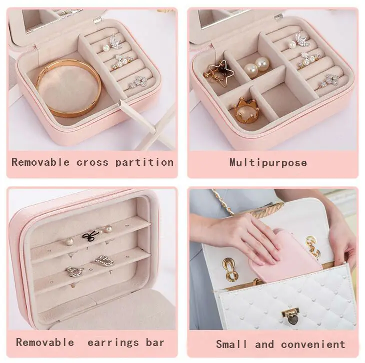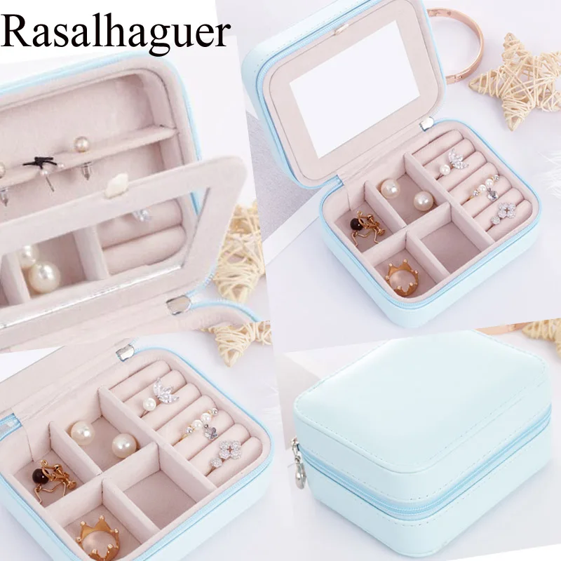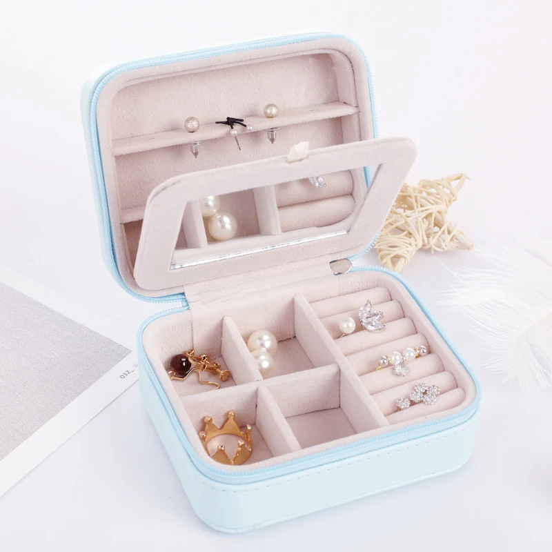 Модная кожаная дорожная портативная мини-шкатулка для серег-гвоздиков, колец, шкатулка для украшений с зеркалом, шкатулка для ювелирных изделий, полезный органайзер для макияжа