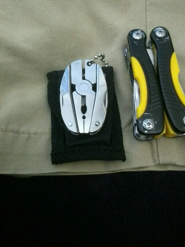 Абсолютно без полезная вещь. Через неделю ношения в кармане, даже не использовал, начали сами вываливается все эти ножи и отвёртки. Весь карман в дребезги. К покупке не рекомендую.