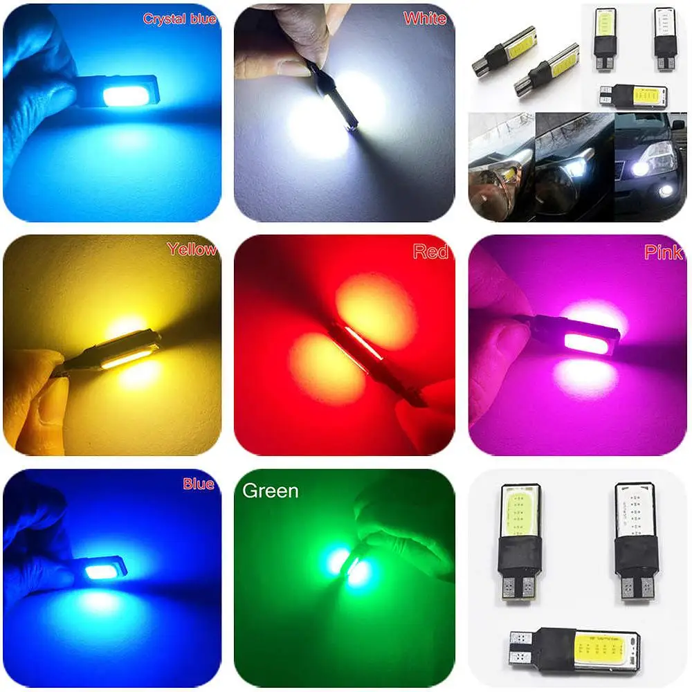 10X Белый Синий Красный авто Led 194 DC 12V COB Canbus без ошибок чтения ламп боковой маркер резервный парковочный сигнал багажник дальнего света