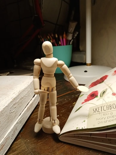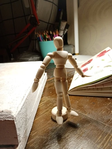 Манекен художника чёткий, поэтому может имитировать осанку, движения и положение тела.