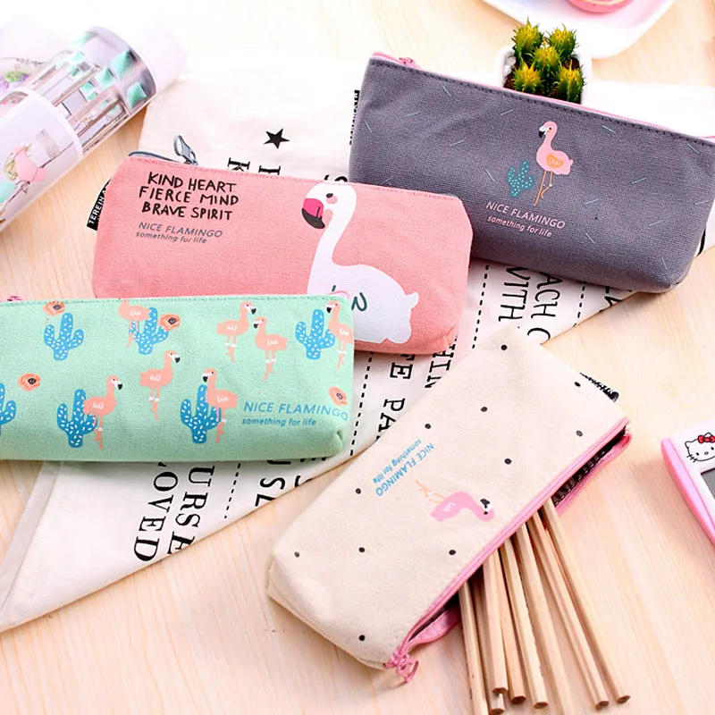 Холщовый Подарочный пенал с Фламинго кавайный чехол для карандаша, ...