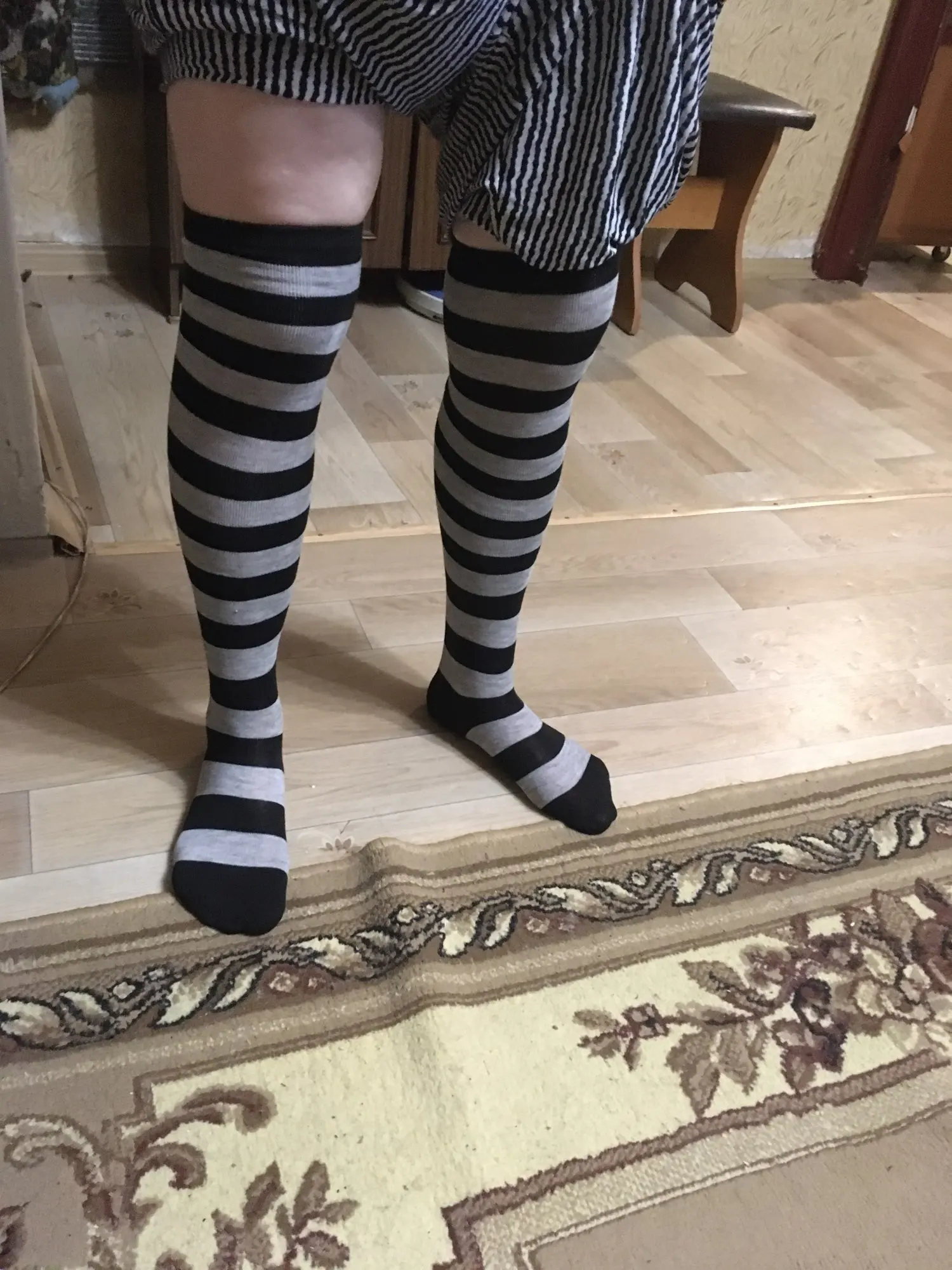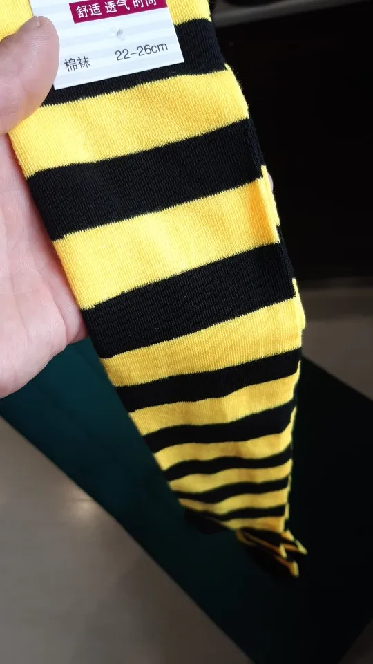 Гольфы понравились. На ощупь приятные, похожи на хлопковые. Смотрятся классно. Правда если присматриваться при чередовании полос есть маленькая ступенька смены цвета. Но это практически незаметно. За такую цену как говориться грех жаловаться. Ногу облегают хорошо, не спадают. Резинка хорошая, не могу сказать, что сильно давит. Но у меня ноги очень худые. В общем все классно.