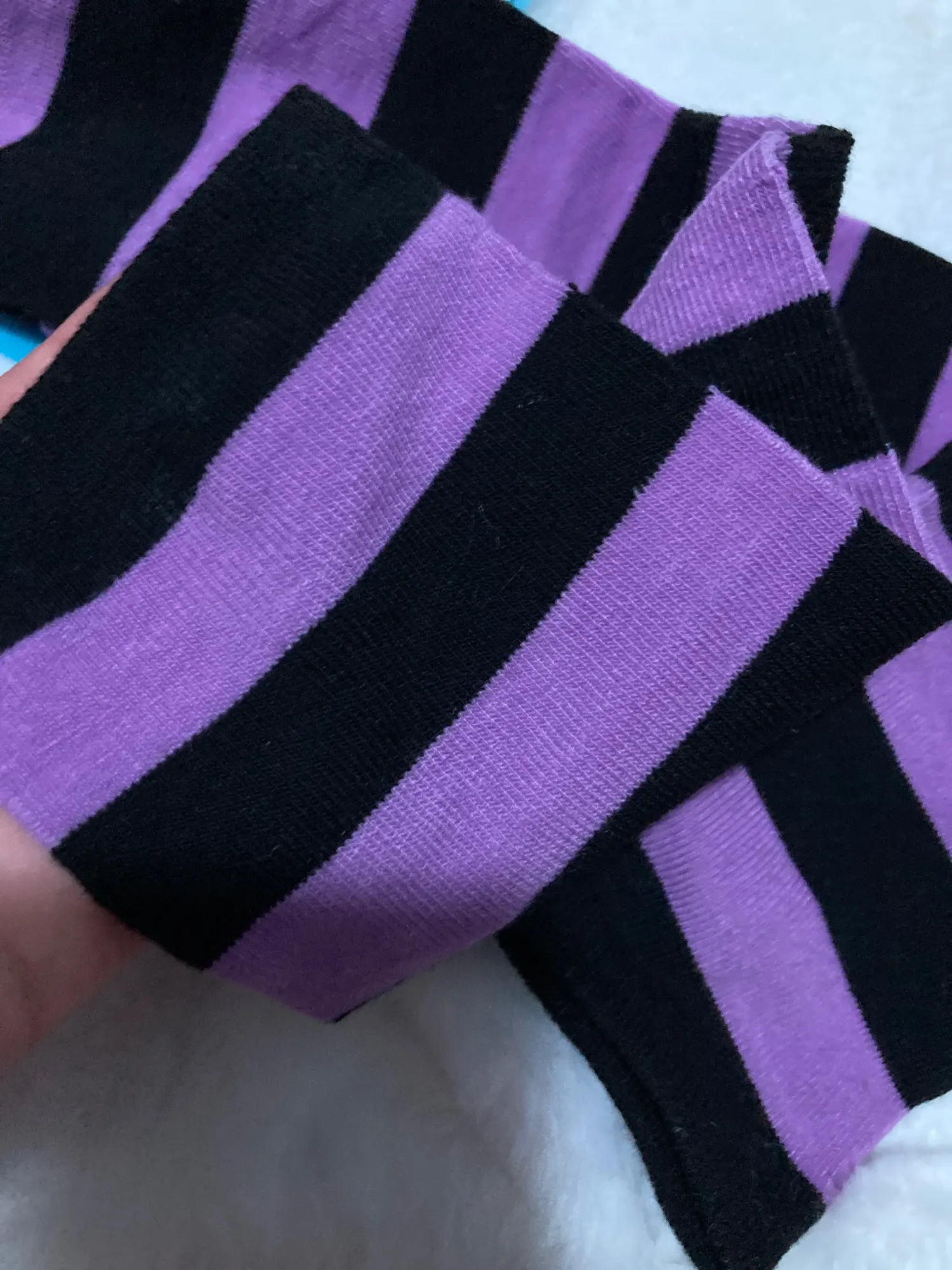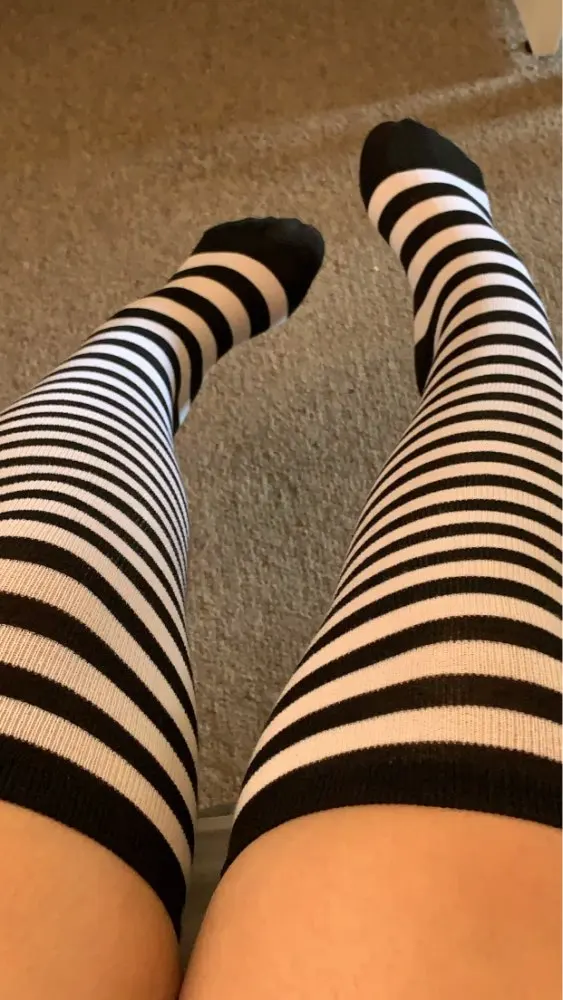 Товар пришел ко мне очень быстро! Я получил это в течение 15 дней. Мне очень нравятся эти носки, они не слишком маленькие на мне. Для справки, самые большие размеры на моем голени-13,5 дюйма и выше колена-14 дюймов. Я ношу американский размер 8 для женщин. Они просто немного прозрачные. Я могу видеть лак для ногтей через них, в противном случае, удобно и мило. :) Это милый цвет Алисы в стране чудес.