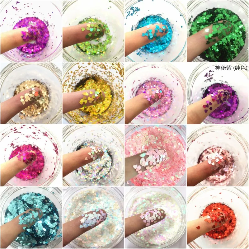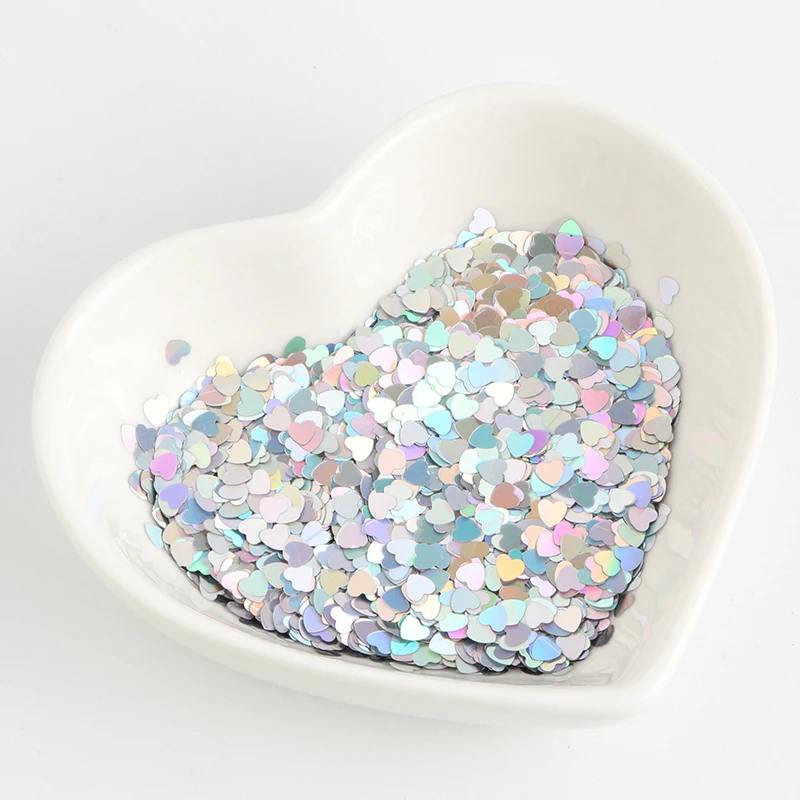 Экологичный ПЭТ 3 мм ультратонкий блестка для ногтей в виде сердца смешанный Голографический лазерный серебристый Блестящий пайетки для рукоделия украшение для ногтей 8 г