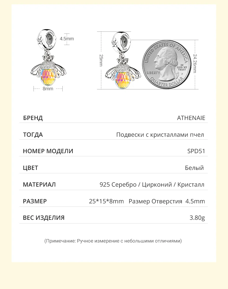 ATHENAIE Классический Новый 925 серебро с кристаллами Подвески пчелы ожерелье подходит браслет для женщин ювелирные аксессуары