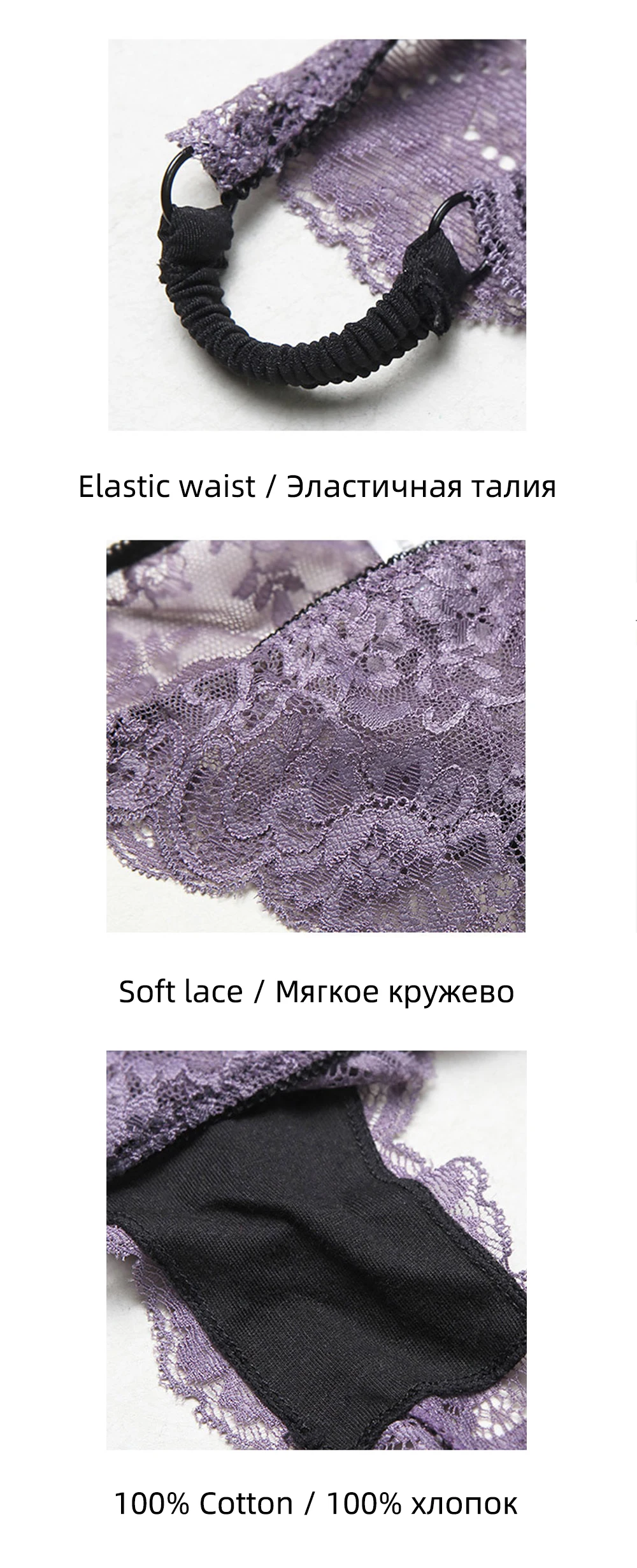Кружево вроде хорошее и в целом красивые но ластовица внутри синтетика и когда их одеваешь ширина трусиков слишком большая спереди, сзади смотрятся хорошо. Берите на два размера больше.