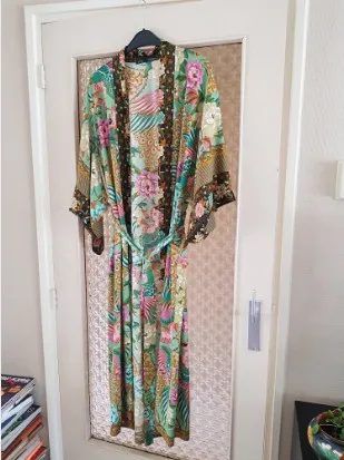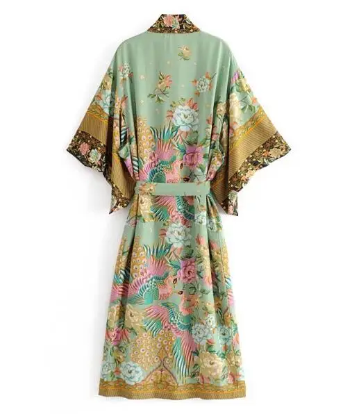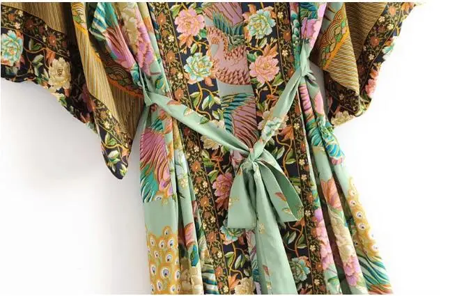 Женская длинная рубашка-кимоно с цветочным принтом, V-образным вырезом