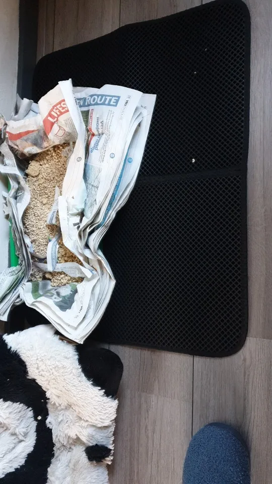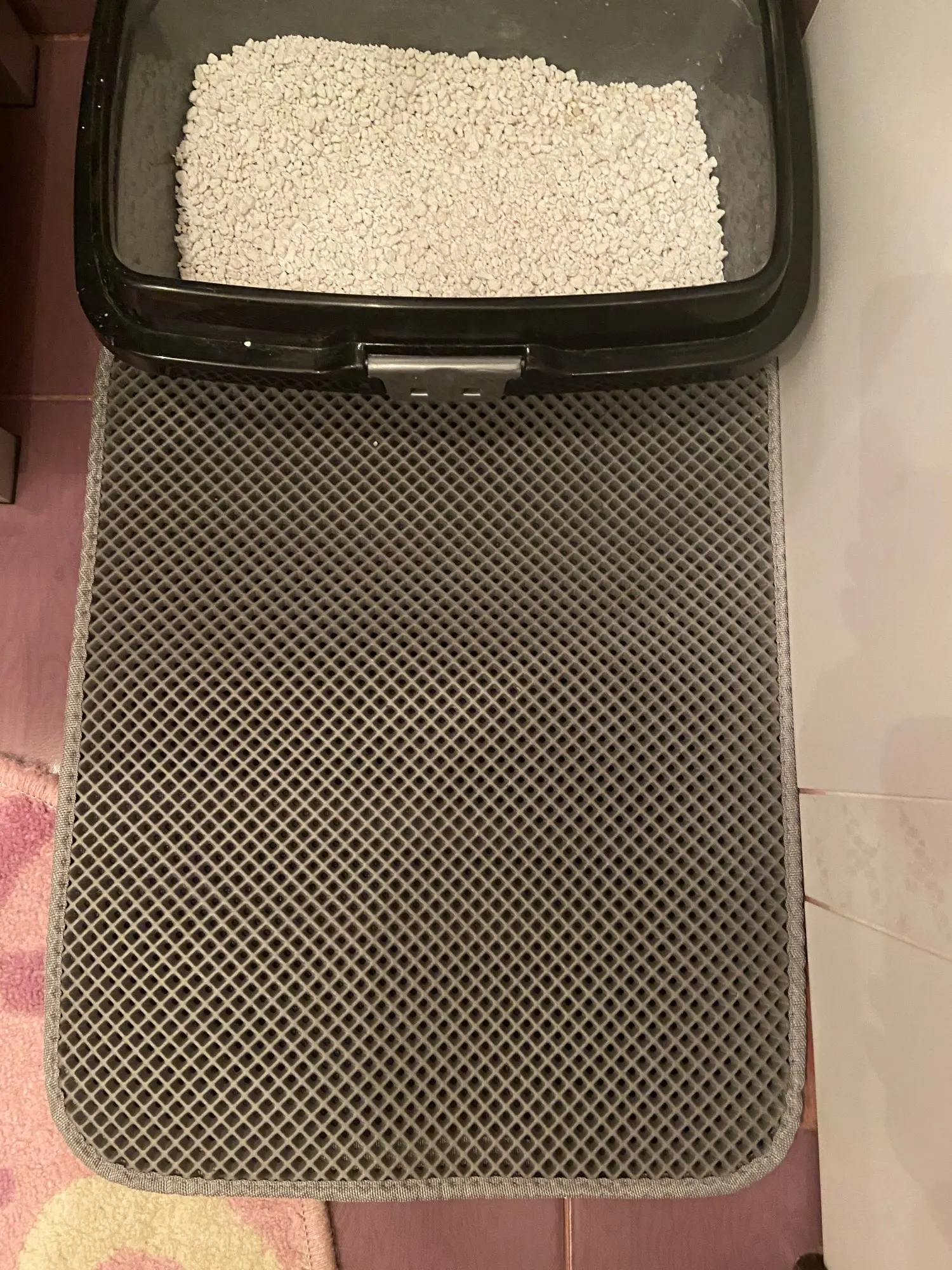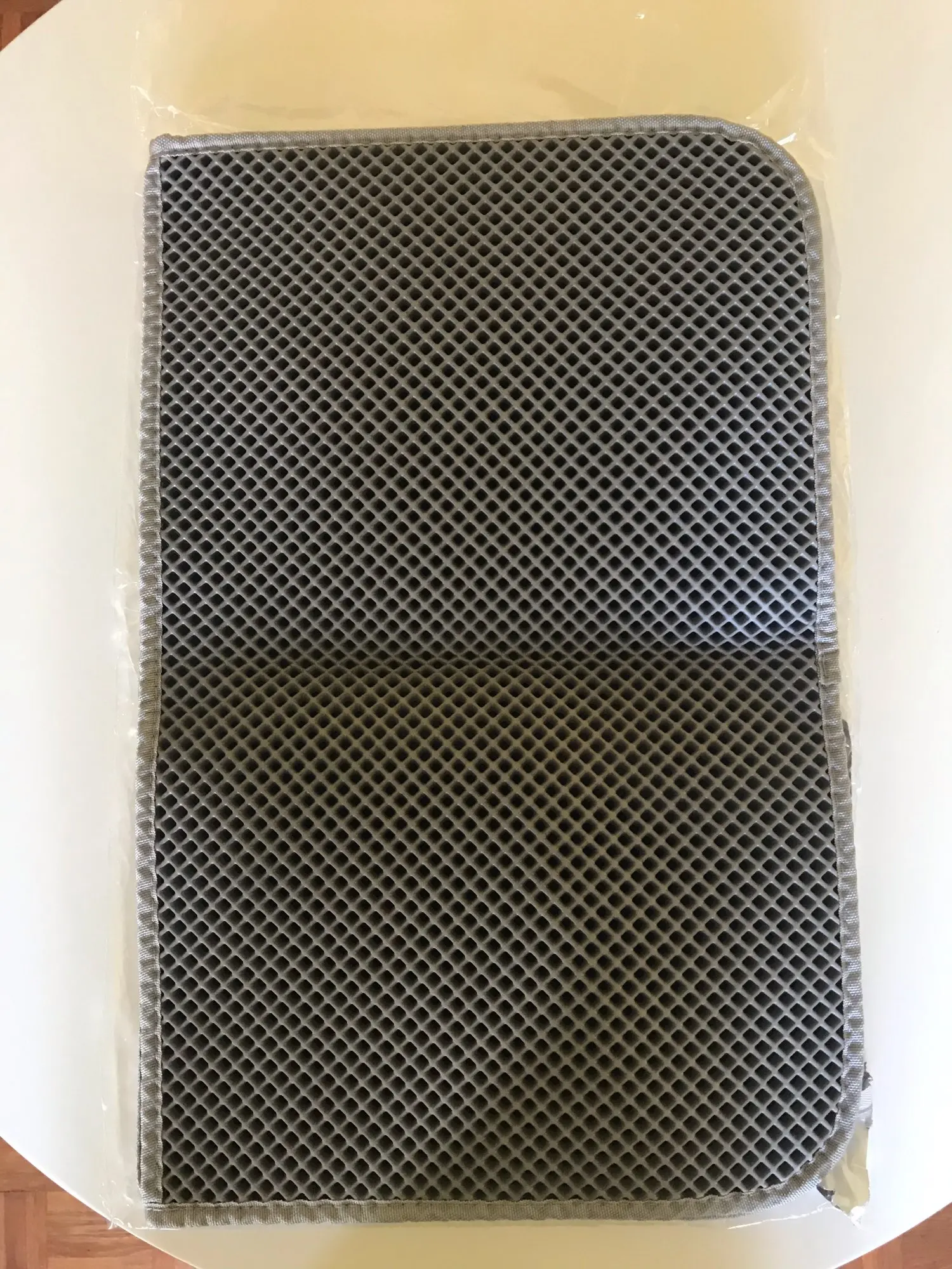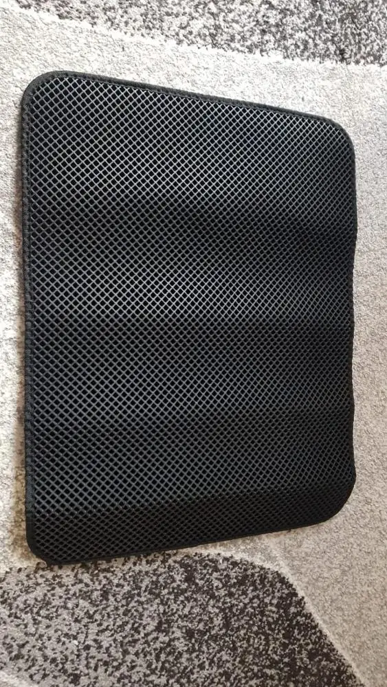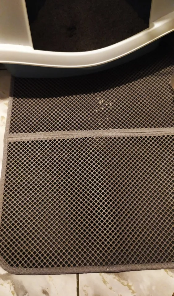 Заказываю коврик второй раз. У нас два кота, поэтому предыдущий коврик был несколько мал для двух кошачьих туалетов. Коврик очень удобный, весь мусор остаётся на коврике, "мокрые лапы" тоже впитываются ковриком. Замечательный продавец, рекомендую!