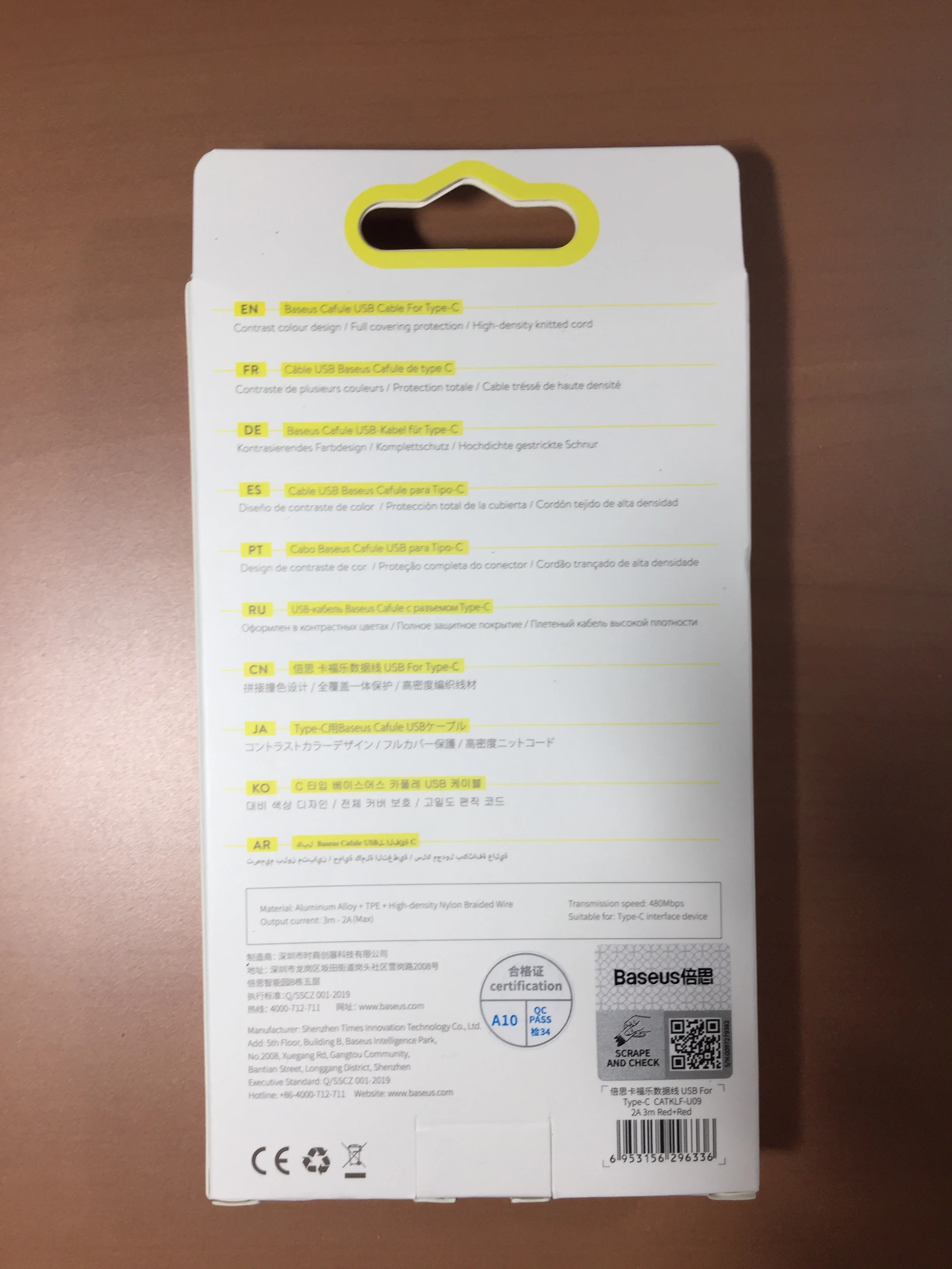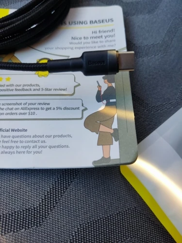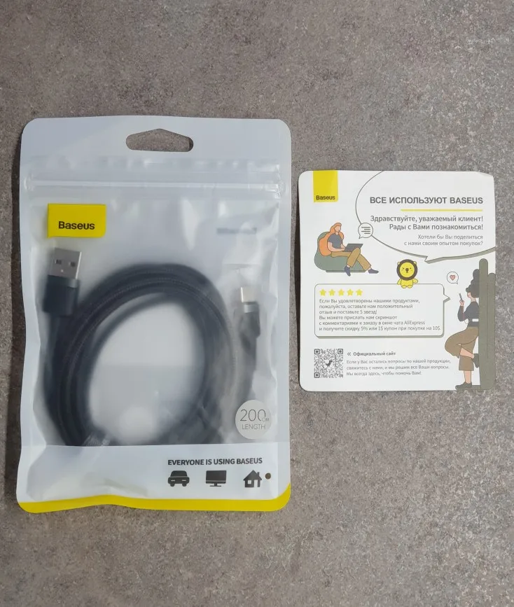 Очень хорошее качество кабеля. Он пришел в коробке с очень хорошей презентацией. Он также приносит липучку для сбора кабеля. Baseus никогда не разочаровывает бренд