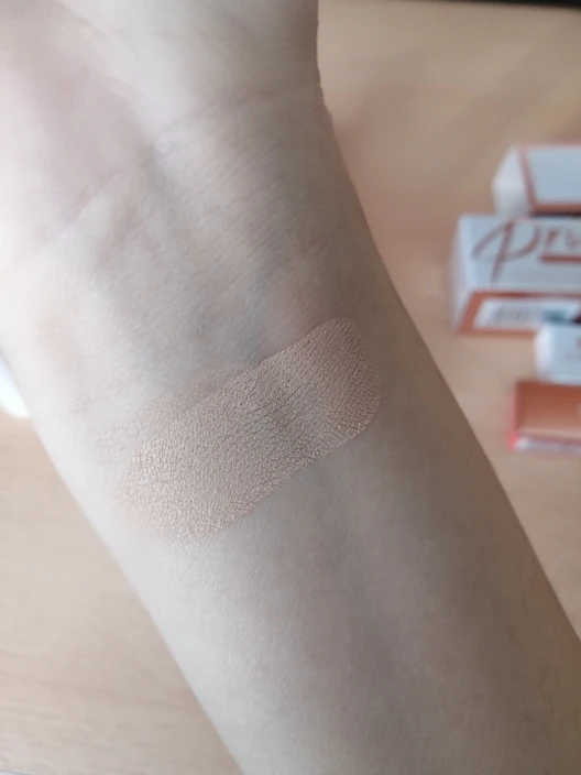 Мне очень понравился. Выравнивает тон отлично. Нанесла из любопытства перед треней, никуда не уполз, хоть и пропотела. На фото я его немного совсем нанесла. Жаль, что продукта мало, буду заказывать еще!