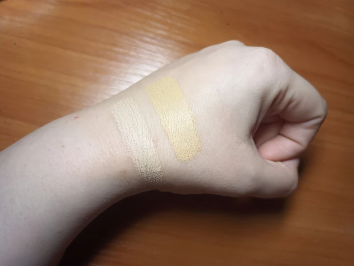 Цвет желтоватый не розоватый, но я читала коментарии так что ждала что скорее всего так и будет. Матовое покрытие не сильно плотный, как грим. Имеет отдушку аромата.