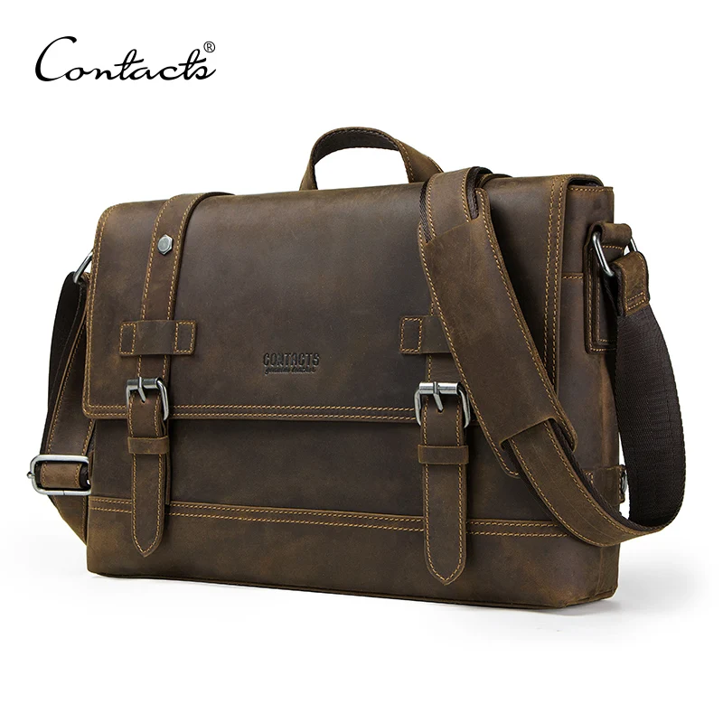 CONTACT'S сумасшедший конь натуральная кожа мужская сумка винтаж человек сумки на ремне для ноутбука сумки мужские высококачественные сумки через плечо 2019