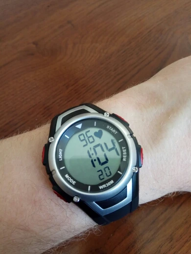 Особенности:Беспроводной сигнал сердцебиения, передаваемый от частоты грудного диапазона при AM5.3KHzОтображение времени: часы, минуты, секундыФункция будильникаЗвуковой сигнал, когда пульс превышает верхние и нижние предельные значения (60-220)Время (максимальное время-23 часа, 59 мимутов, 59 секунд, 99)12 24-часовой формат отображенияEL подсветкаТон нажатия клавишСвойства продукта:Функция: будильник, пульсометр, 24-часовая инструкция, мировое время, фосфоресцирующийПодходящие люди: ВзрослыеЯзык: английскийСовместимость: другоеТип: другой, на запястье и носимыйСтиль: спортивныйМатериал ремешка: РезинаМатериал корпуса: стальТип механизма: электронныйГлубина водонепроницаемости: 3 мТип товара: цифровые часыСмещение: умный, цифровойЗакрывающиеся крючки: ПряжкаФорма корпуса: круглыйНомер модели: нетХарактеристики:Общий размер: 245*22 ммРазмер циферблата: 41*16 ммНагрудный передатчик strap66-95cm (эластичный)Вес нетто: 117 гВес посылка: 137 гЦвет: черныйСодержание упаковки:1 х часы1 x руководство на английском языке1 х нагрудный передатчик