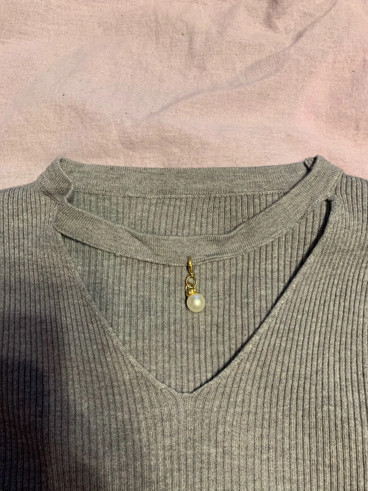 Кофта мягкая приятная без ниток и сильного запаха, мне на размер хs-s идеально, цвет совпадает, но! Планочка на шее длинная и кулон на шее свисает криво, хочется подшить ее в одну сторону, но боюсь что будет видно шов, кулон цвета ярко жёлтого, выглядит дёшево
