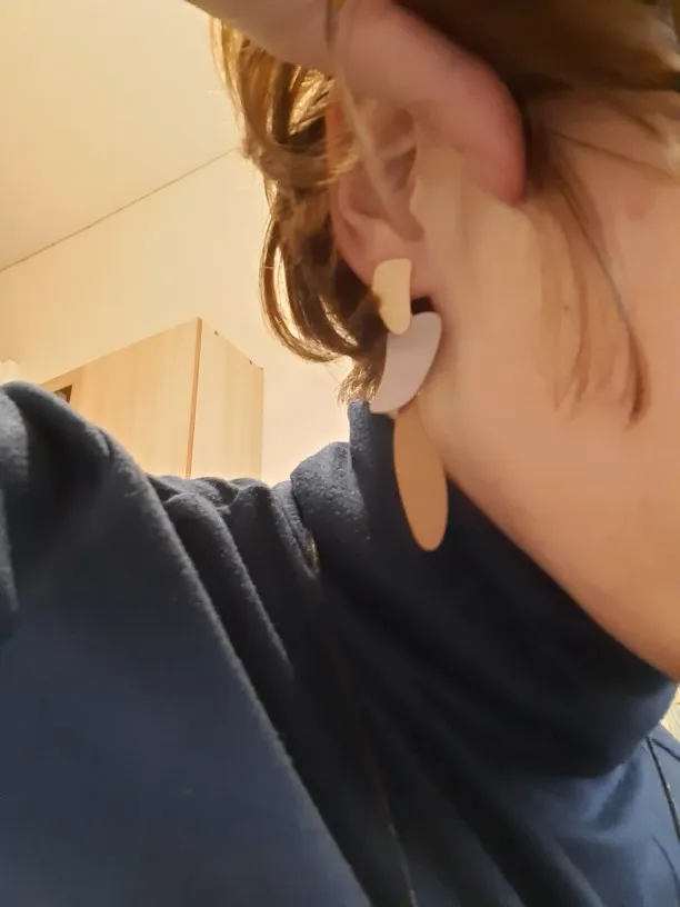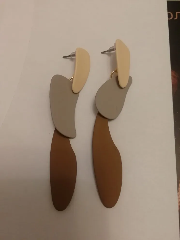 Стильные серьги. Точно как на фото продавца.Подумываю взять ещё в другом цвете. Доставка 2 недели.