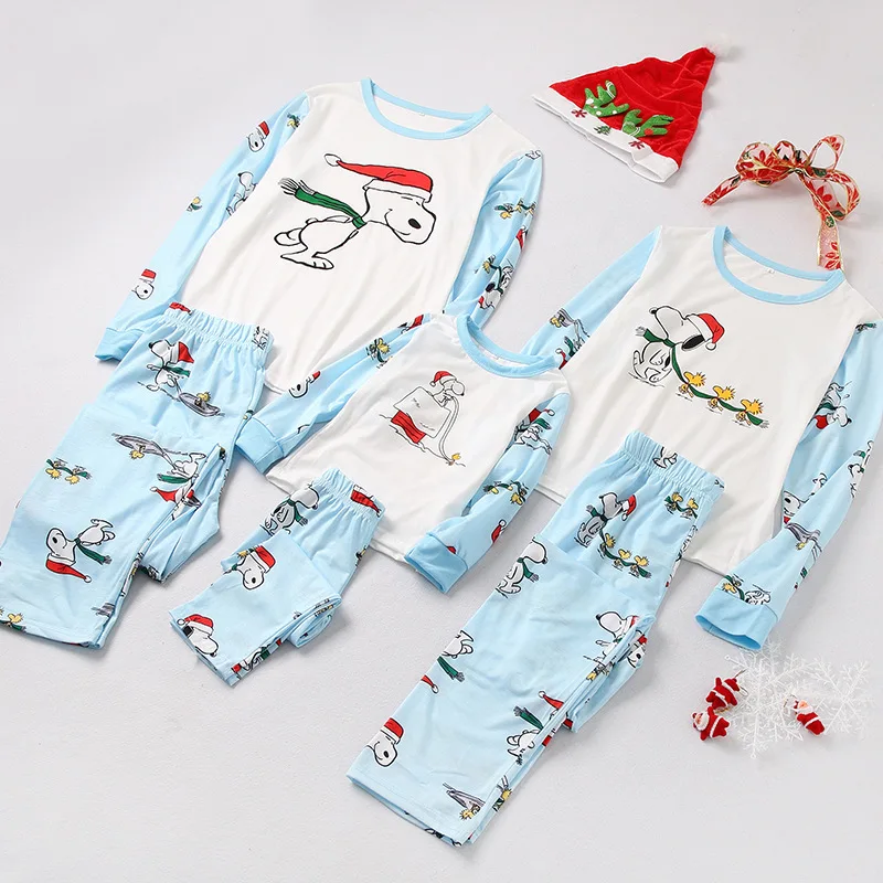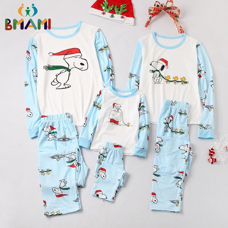 Новое поступление 2022, Рождественская одежда, черный и белый топ с длинным рукавом и мультяшным принтом медведя + штаны, Семейный комплект для рождественской пижамы