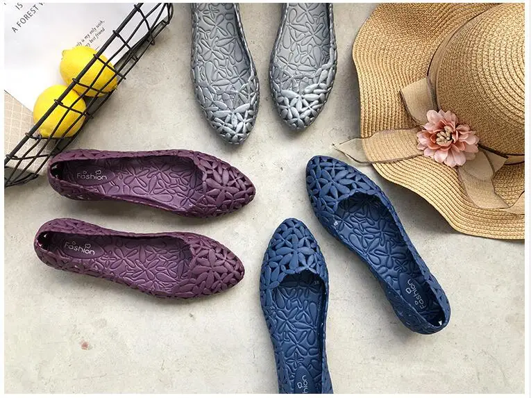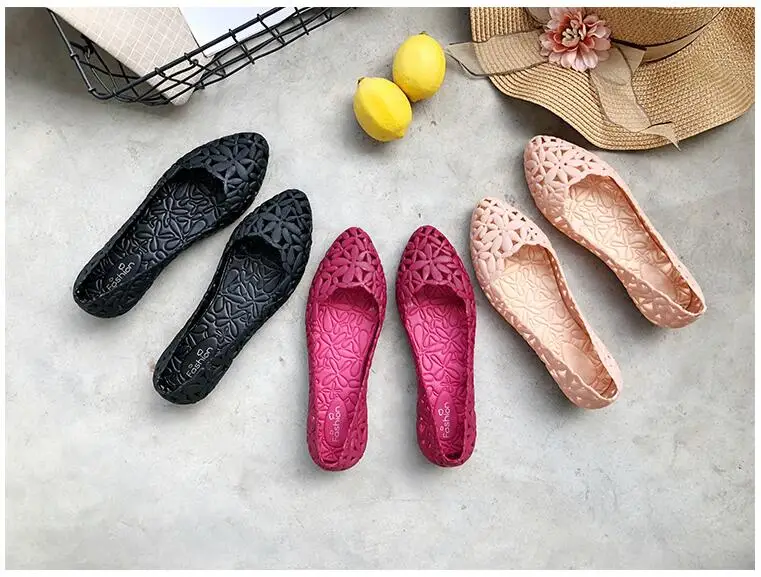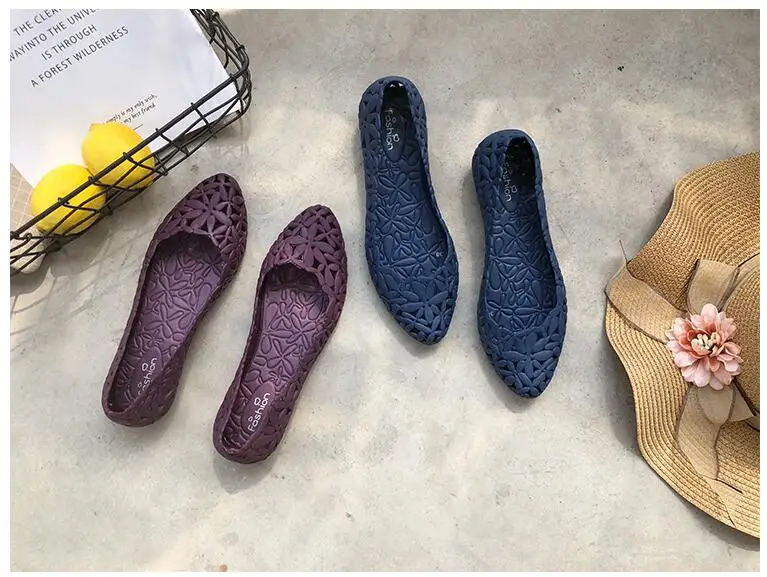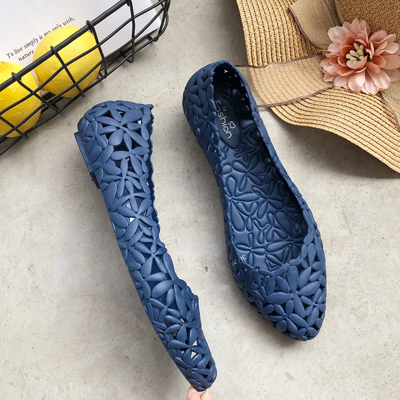 Женские сандалии-желе с перфорацией, удобные нескользящие босоножки на плоской подошве, для пляжа и бассейна, прочная обувь с острым носком, лето